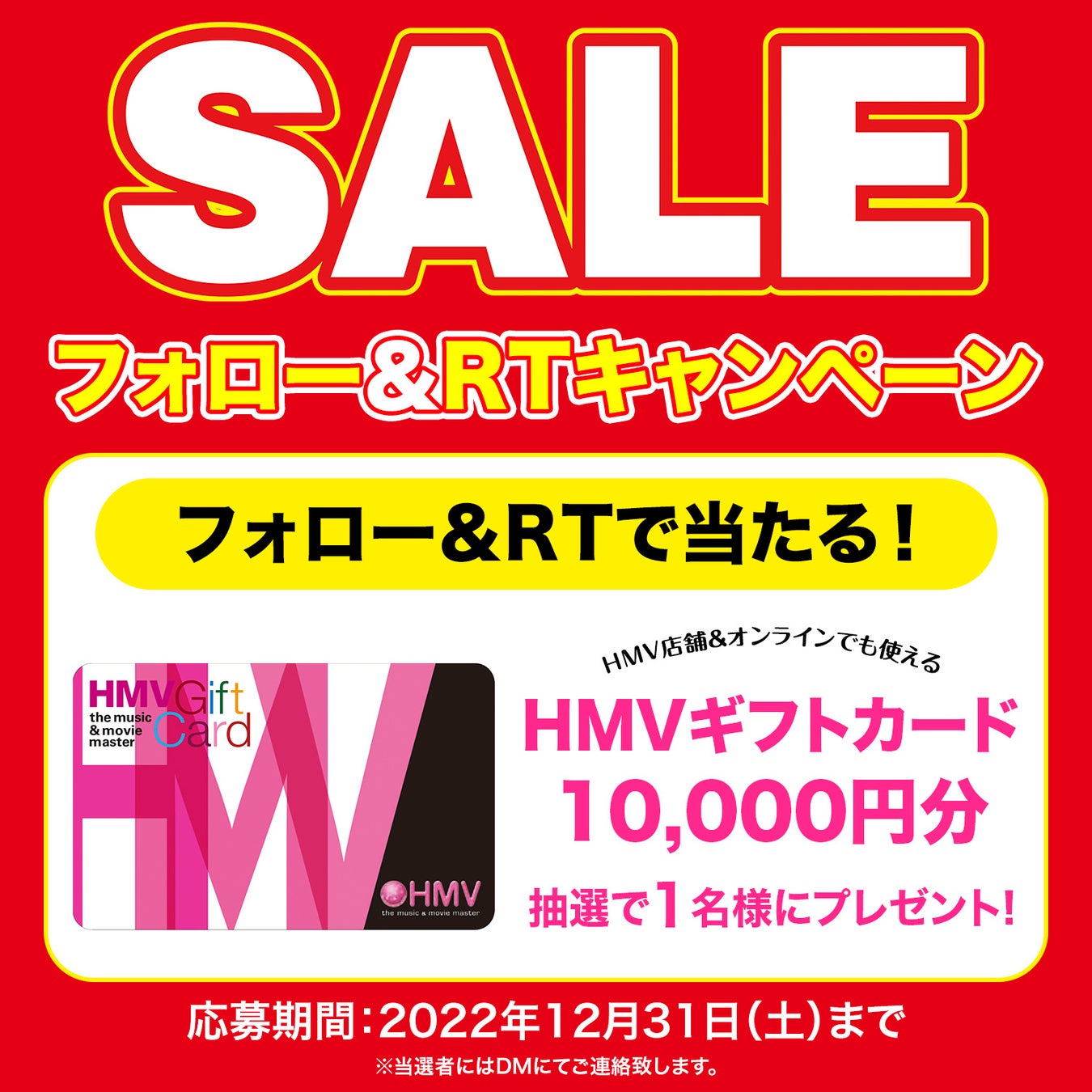 また、HMVの公式Twitterアカウントでは、SALE開催を記念して、HMV店舗・HMV&BOOKS onlineどちらでも使用可能な1万円分のギフトカードが当たるフォロー&RTキャンペーンも実施!