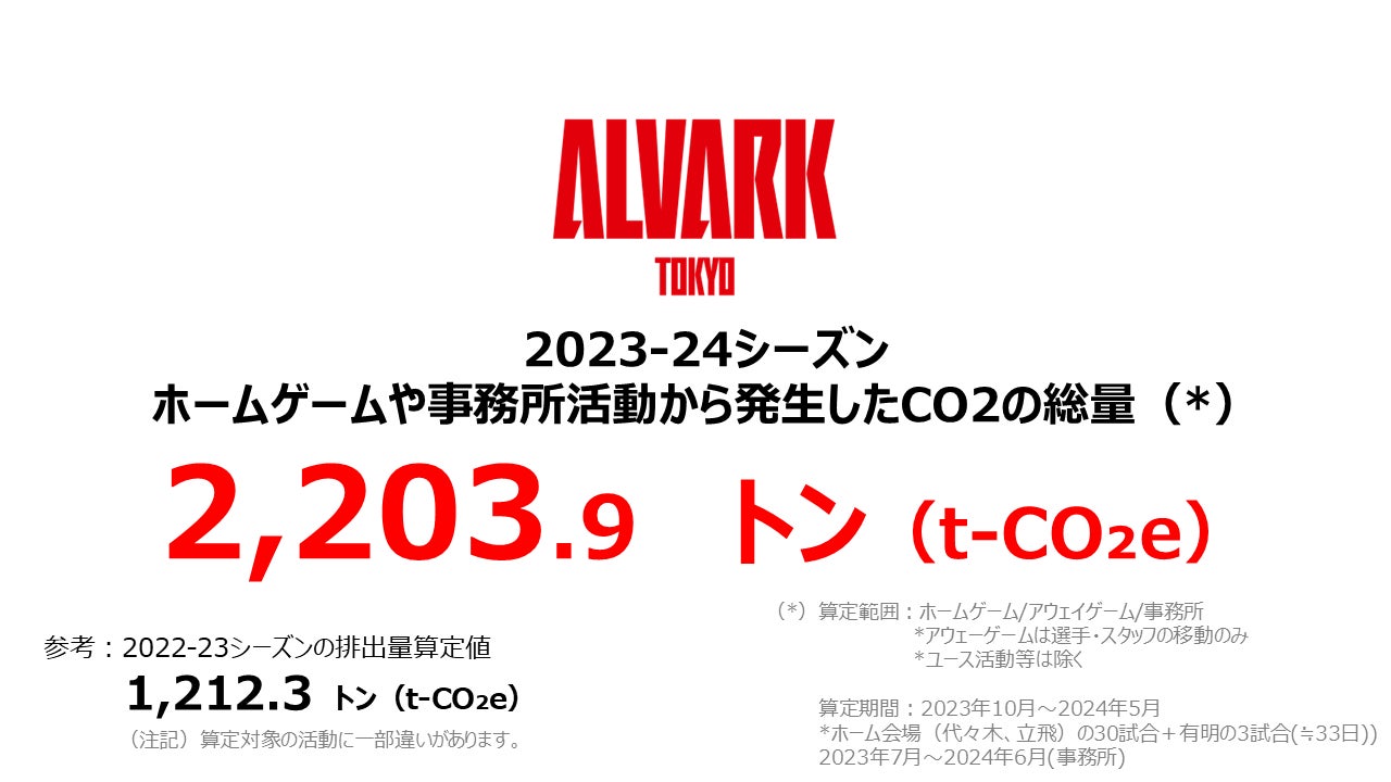トヨタアルバルク東京株式会社は、SDGsサポーターであるe-dash株式会社と協働し、2023⁻24シーズン中の主要な活動から排出した二酸化炭素(以降 CO₂)排出量を算定しましたので、以下の通りご報告いたします。