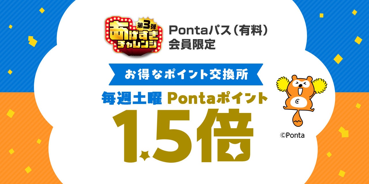 下記①②を満たすお客さま ①特典対象日にお得なポイント交換所で100ポイント以上交換いただくこと ②ポイント交換時点でPontaパス会員であること(新規入会含む) |