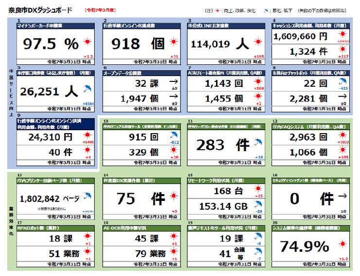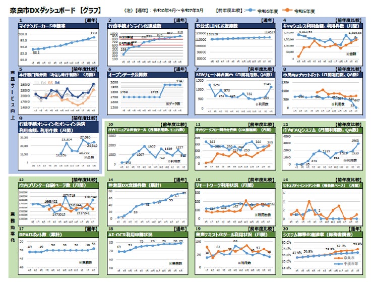 その進捗を「DXダッシュボード」として可視化し、庁内に広く公開・共有しています。今回は、このダッシュボードを通じて、奈良市のDXの取り組み状況を紹介します。