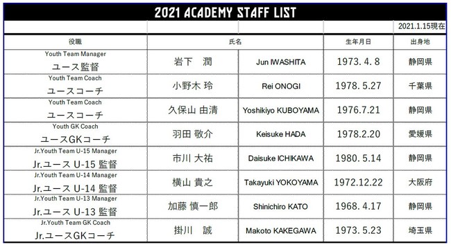 2021シーズン アカデミースタッフ新体制のお知らせ清水エスパルス2021年1月15日 12時00分いいね!数を読み込み中ですこのたび、2021シーズン アカデミースタッフの新体制が決定しましたので、下記の通りお知らせいたします。 すべての画像種類その他 ビジネスカテゴリスポーツダウンロードプレスリリース素材このプレスリリース内で使われている画像ファイルがダウンロードできます