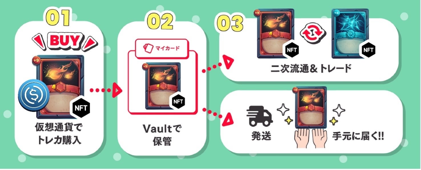 また、オリジナルパックの販売ロジックは現在オフチェーンですが、将来的にはオンチェーン化することを予定しています。ブロックチェーンを使い、賞品や排出確率、取得ユーザーが可視化されることで、ブロックチェーンのユースケースの創出、およびトレカ業界の健全化に貢献して参ります。