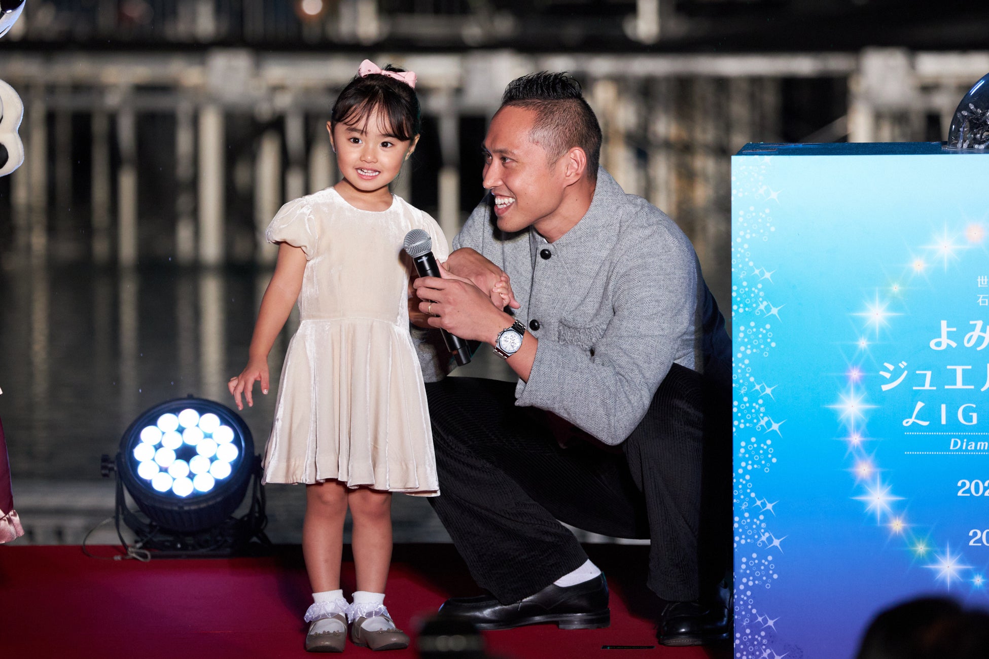 おのののかさんは、「娘がまだ歩けない赤ちゃんの頃から来ています。まだ幼く目があまり見えていないはずなのにキラキラしたイルミネーションを見上げてはしゃいでいた光景を思い出します。今は年齢を重ねると共に乗れるアトラクションも増えてきました。家族にとって成長を感じられる特別な場所です。娘が大きくなった時、写真を見返してこの点灯式に参加したことを思い出してほしいです」と、家族での大切な思い出について語りました。点灯直後、娘さんは自らマイクを持って「キレイ」と話すなど、終始わくわくした様子で会場を和ませていました。また、塩浦選手も「自身も幼い頃から来ている場所なので、こうして家族と一緒に訪れることができて嬉しいです。園内いたるところがキラキラと綺麗なので皆さんにもぜひ一周全部歩いて回ってもらいたい」とコメントしました。
