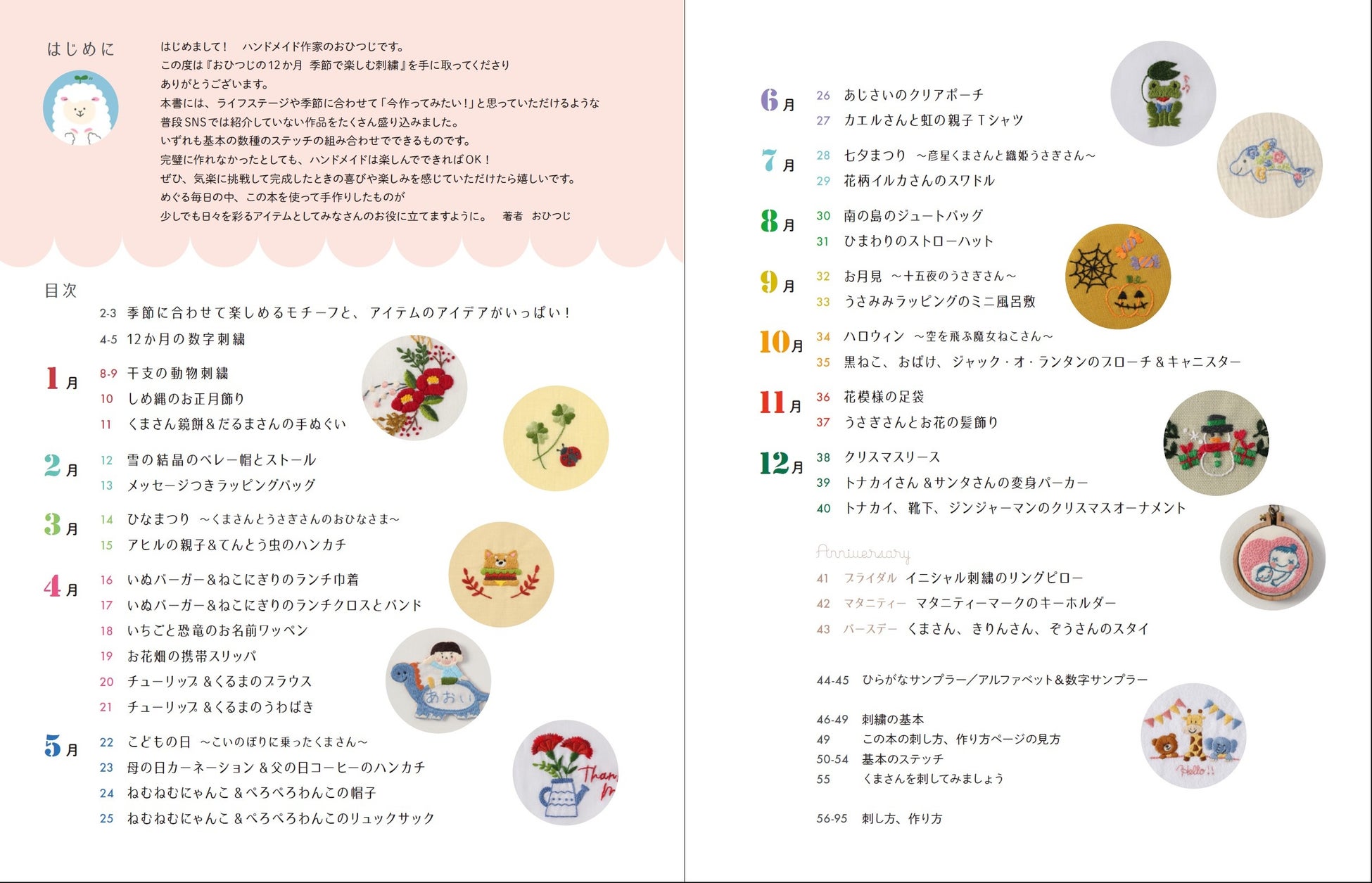 大人気ハンドメイド作家おひつじさんの12か月楽しめる季節の刺繍本です。