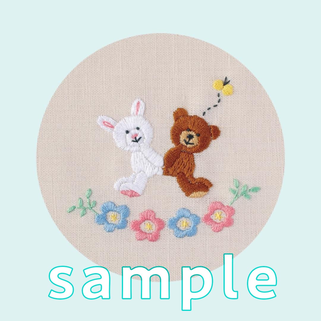 楽天ブックスでは数量限定の特典として、本書未収録、初公開の「くまさんとうさぎさんのお花畑」の刺繍図案をポストカードにしました!お好みのアイテムに刺してもかわいらしく、刺繍枠に入れて飾っても素敵です。