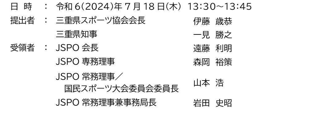 第89回国民スポーツ大会(令和17/2035年)本大会 三重県からの開催要望書を受領しました