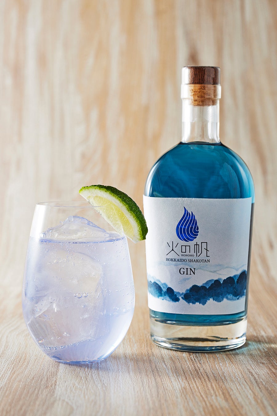 積丹の美しい海を想起させる青いジン。