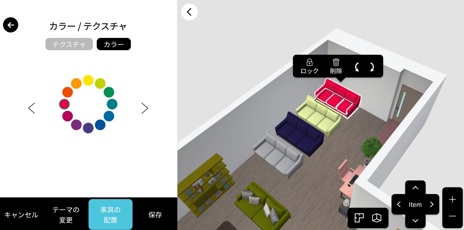 空間内のアイテムを多彩なカラーバリエーションから選択可能