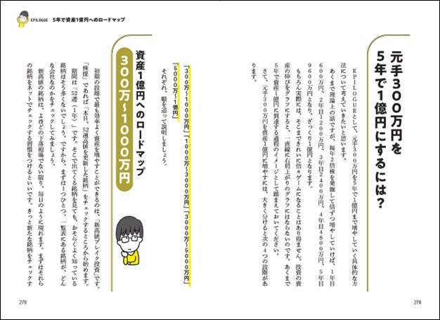 本書『5年で1億貯める株式投資』は、そうした将来のお金の不安を解消するために株式投資を始めたい、または既に始めている人たちにおすすめの1冊です。著者のkenmo氏は、サラリーマンとして会社勤めをしながら元手300万円から株式投資を開始。月々の給料は趣味のアニメグッズや声優の推し活に使い、株式投資への資金追加はまったくのゼロにもかかわらず、わずか5年で資産1億円を達成。現在は個人投資家同士の情報交換を目的とした「湘南投資勉強会」を設立し、自らも投資家として約3億円の資産を運用しています。そのkenmo氏が「億り人」になるまでに至った、会社勤めの人にも再現性が高い4つの投資法や、「絶対やってはいけない」株式投資のNGポイント、決算書を見る際に押さえておくべきポイントなどを、図解を用いてわかりやすく解説しています。