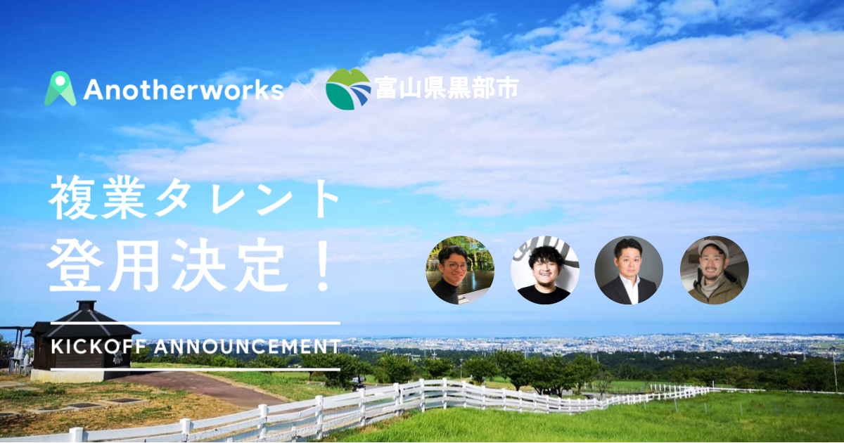そこで弊社では、複業クラウドを活用し全国の自治体が抱えるさまざまな課題と、その課題を解決できるスキルをもつ複業人材とのマッチングを支援することで、地方創生に貢献できないかと考え、自治体との連携を推進しています。黒部市とAnother worksは、2023年8月に協定を締結し、行政へ複業人材を登用する実証実験を開始しました。