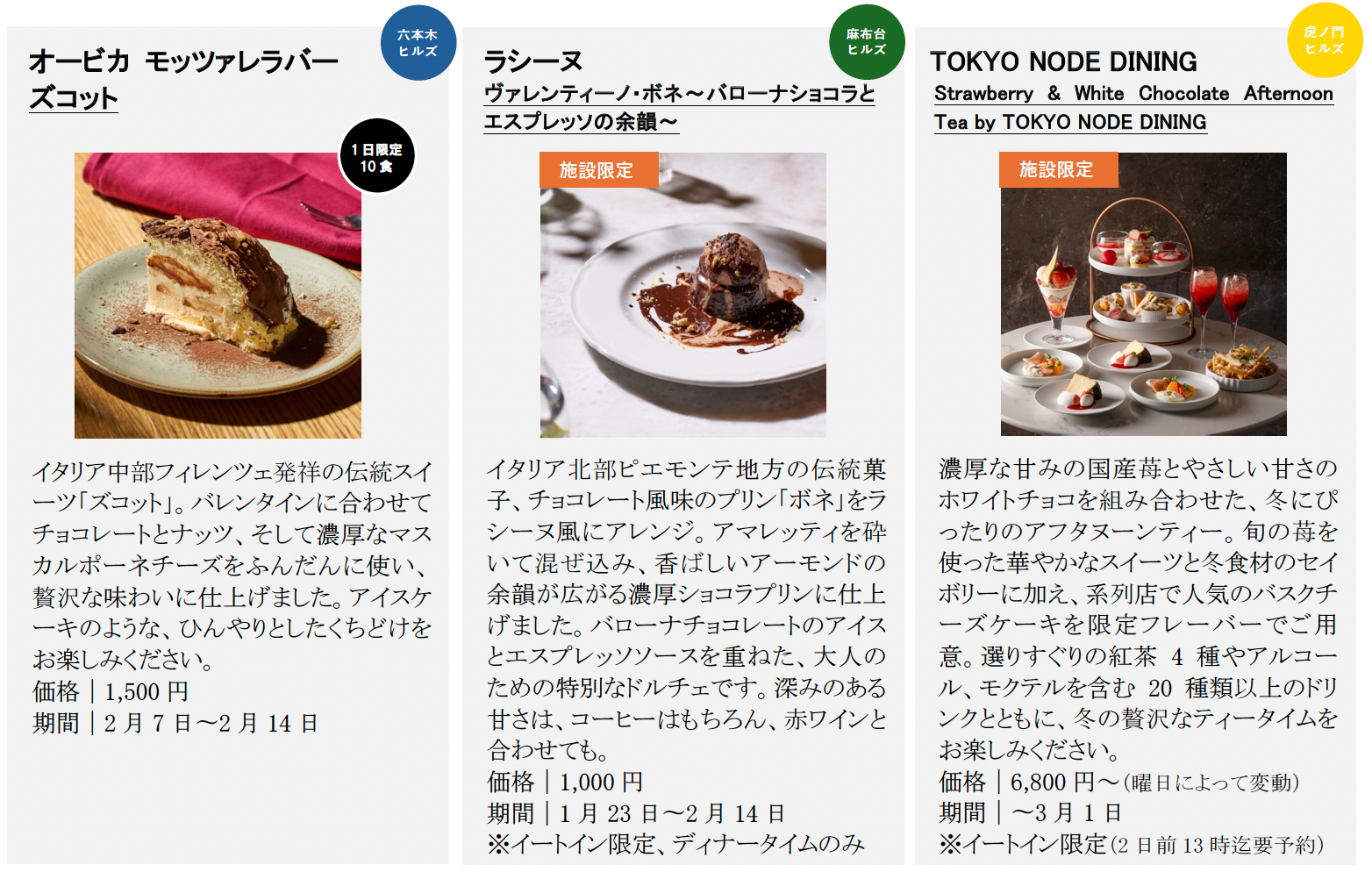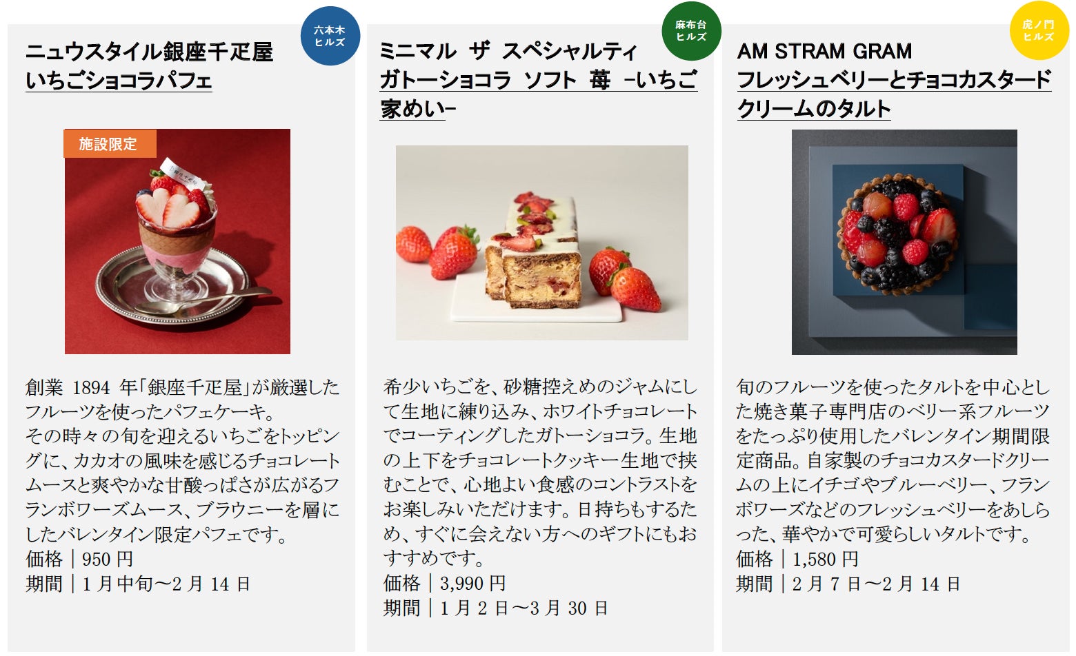 今年はヒルズのスイーツとともに、特別なバレンタイン・ホワイトデーをお過ごしください。