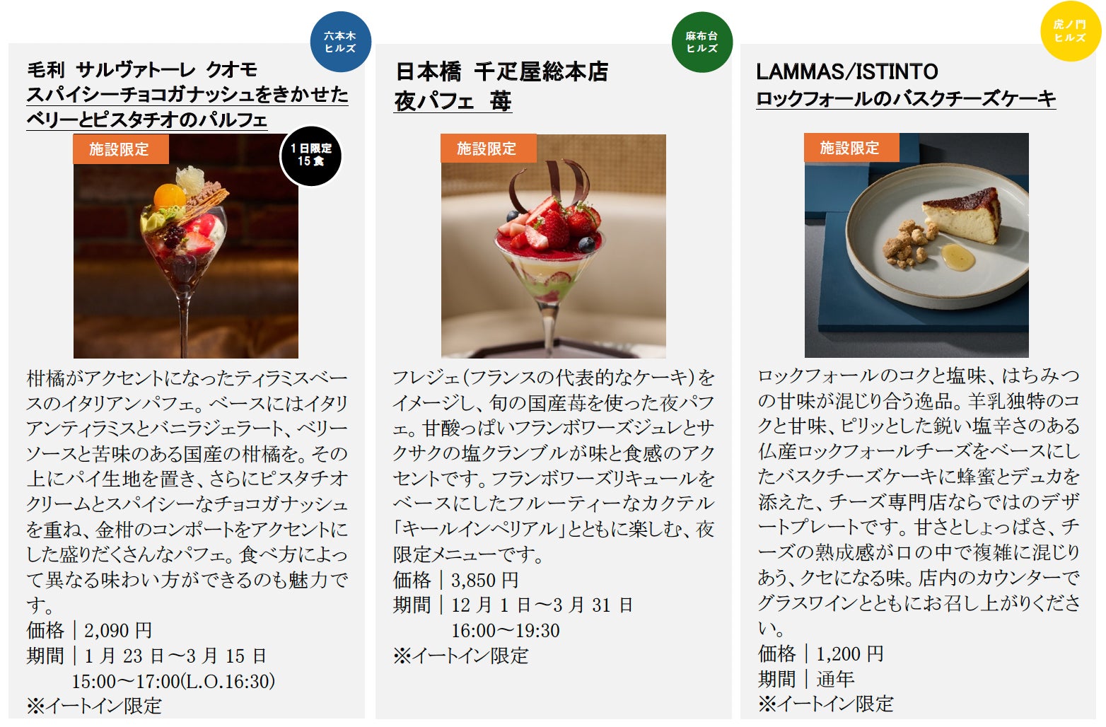 参加店舗:麻布台ヒルズ・六本木ヒルズ・虎ノ門ヒルズ内 約80店舗