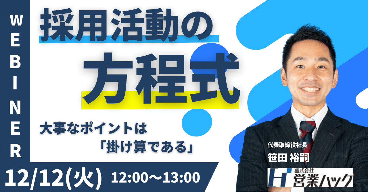 採用は方程式!採用の各ステップの成功率を高めるコツをお伝えするウェビナーを開催します《12/12(火)12:00~無料オンラインセミナー》