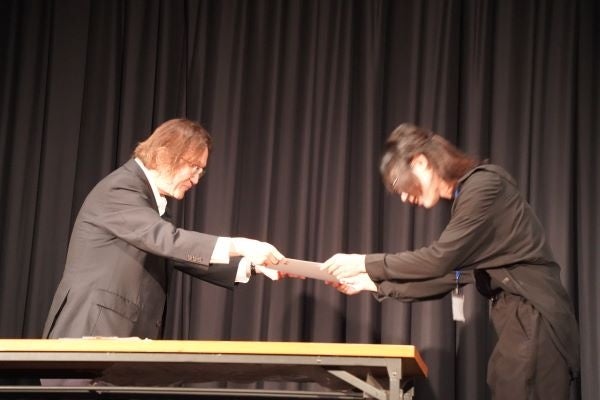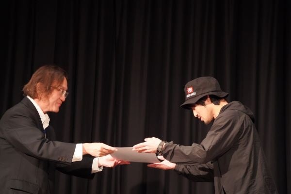 「お選びいただいてありがとうございます。今回広島に来させていただくのも初めてで、映画祭で賞をいただく事も初めてなので大変驚いております。このように賞をいただけたという事は、ひとえに皆様に応援していただいているという風に受け止めて、今後もさらに良い作品を作っていけるように頑張っていこうと思います。」