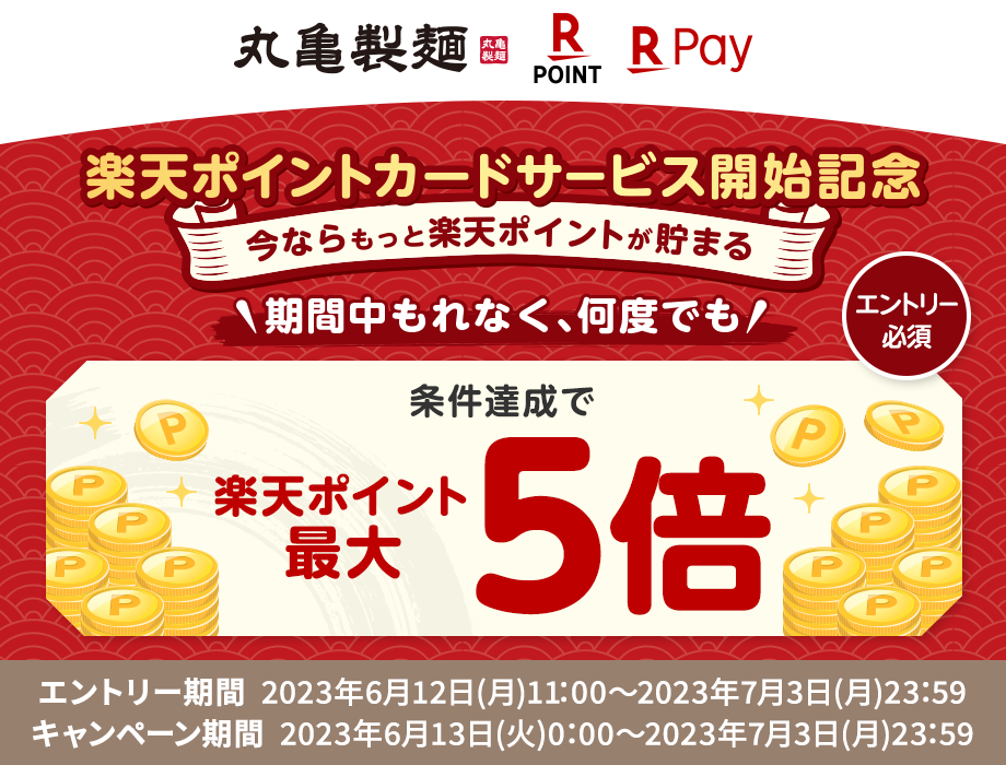 「楽天ポイントカード」、丸亀製麺でのサービス開始を記念して「楽天ポイント」最大5倍キャンペーンを開催