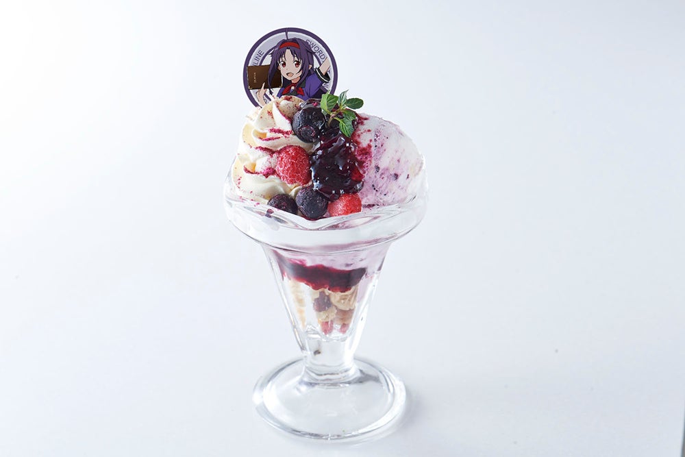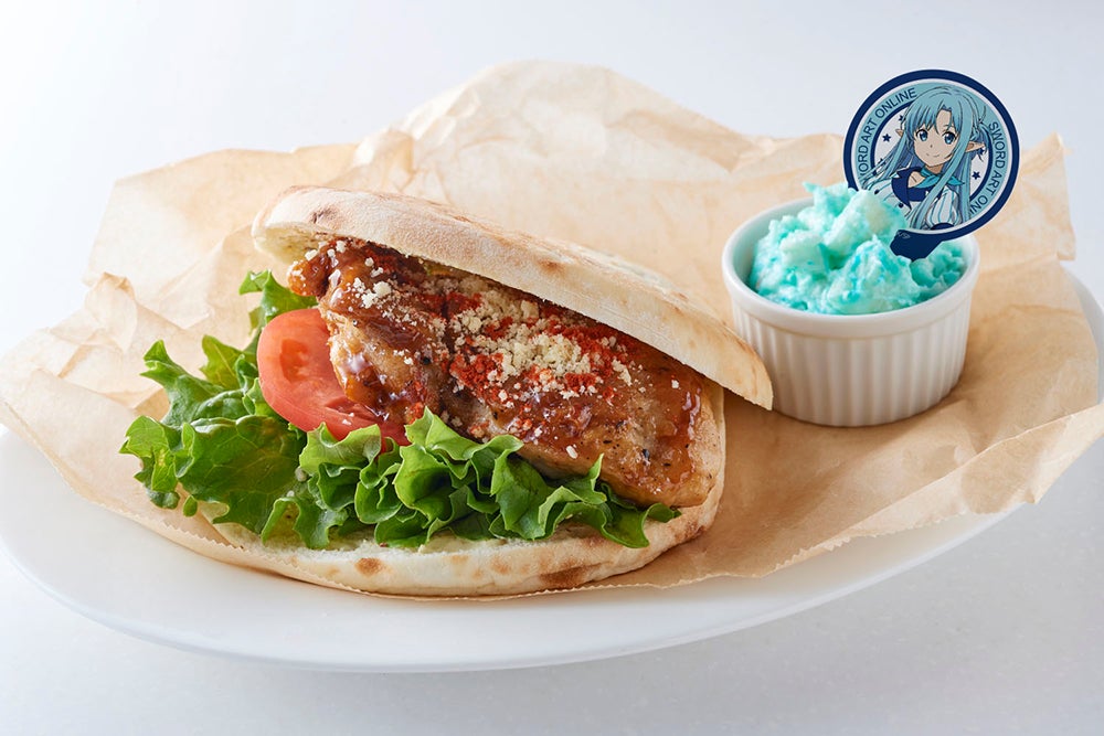キリトのトレードマークである黒い剣をイメージした「黒の剣士 キリトのブラックカレー」や「ユウキ ブルーベリーチーズパフェ」など 、ここでしか味わえないコラボメニューが登場!さらに、ダイナー風衣装の描き下ろしイラストを使用した「アクリルスタンド」や、おとぎばなしがモチーフのミニキャライラストを使用した「トレーディング缶バッジ」などの新作グッズも販売いたします。
