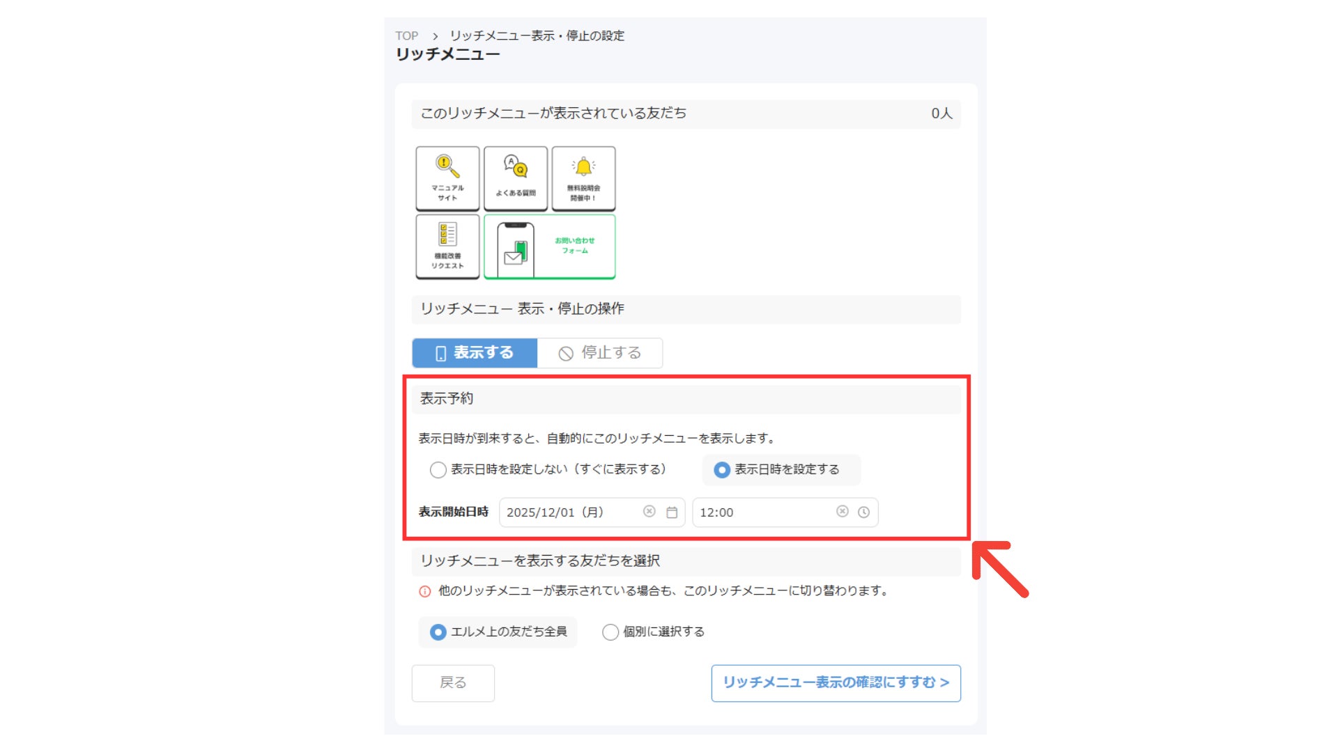 リッチメニューの運用が簡単に!エルメに表示予約機能を追加