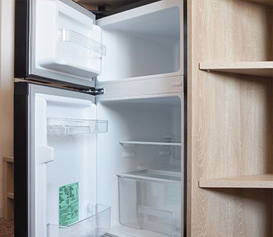 2. 全室15㎡以上の広い客室に、洗濯機、電子レンジ、2ドア冷蔵庫を備えた快適空間