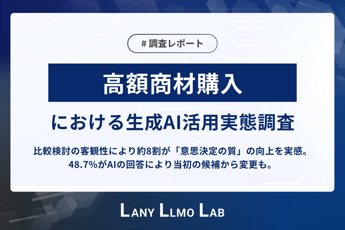 【高額商材購入における生成AI活用実態調査】比較検討の客観性により約8割が「意思決定の質」の向上を実感。48.7%がAIの回答により当初の候補から変更も。