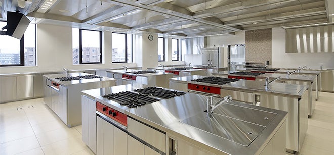 - 涼しい実習場で楽しく調理実習。最先端の施設・設備