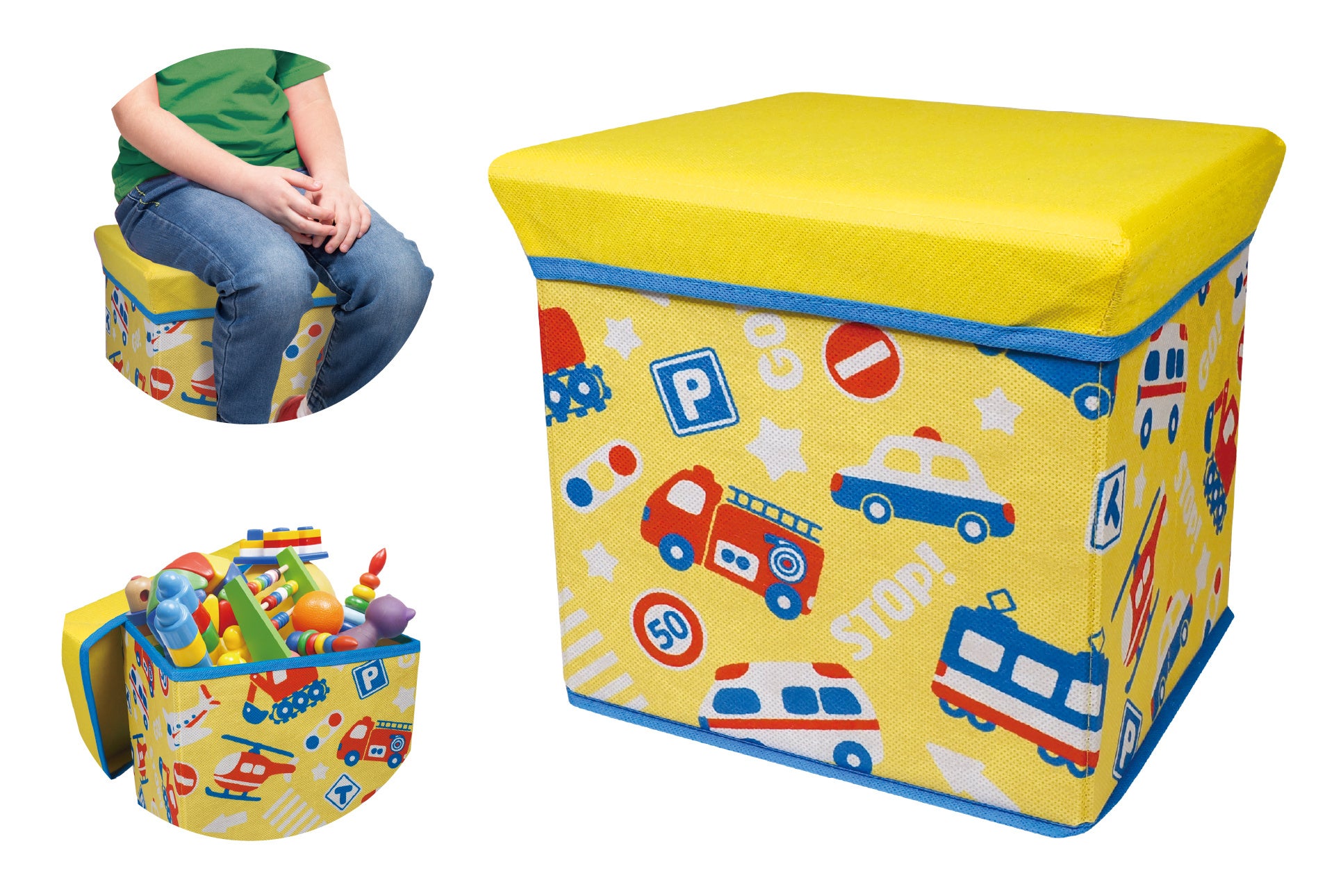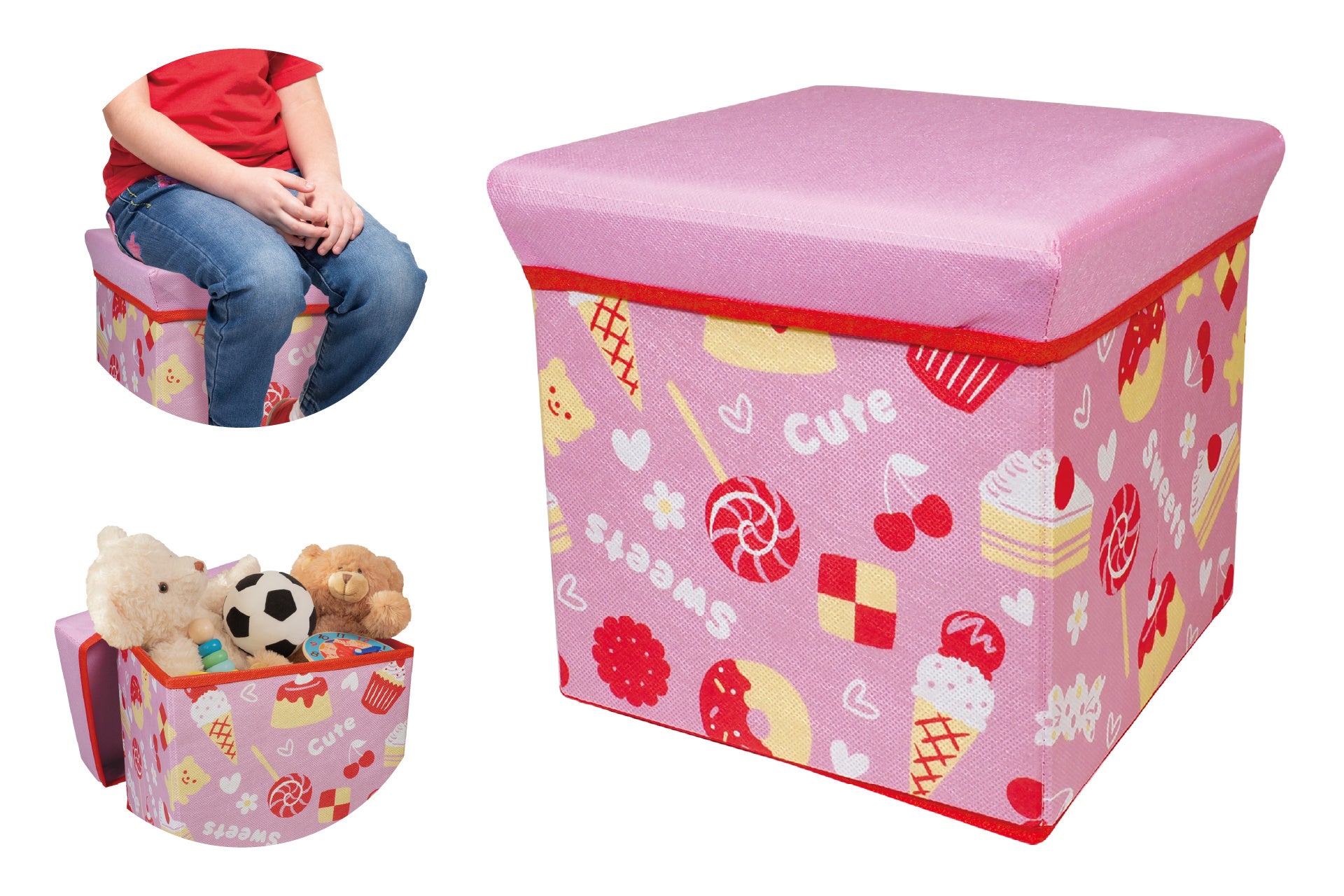 特徴:お片付けがもっと楽しくなる、乗り物柄とスイーツ柄のお片付けチェアが登場♪お部屋のインテリアとしてもとってもキュート♪子ども部屋などの散らかりがちな小物などを収納できる収納ボックスに、フタをすればチェアにもなる2WAY使用。使わない時はスッキリたためてとっても便利!