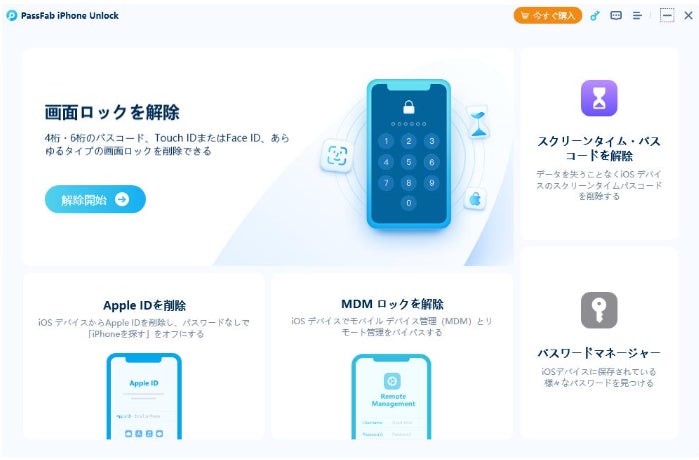 方法1:iPhone/iPadの画面ロックを解除する専門ソフトPassFab iPhone Unlockで強制的に初期化する【パスコードなし】