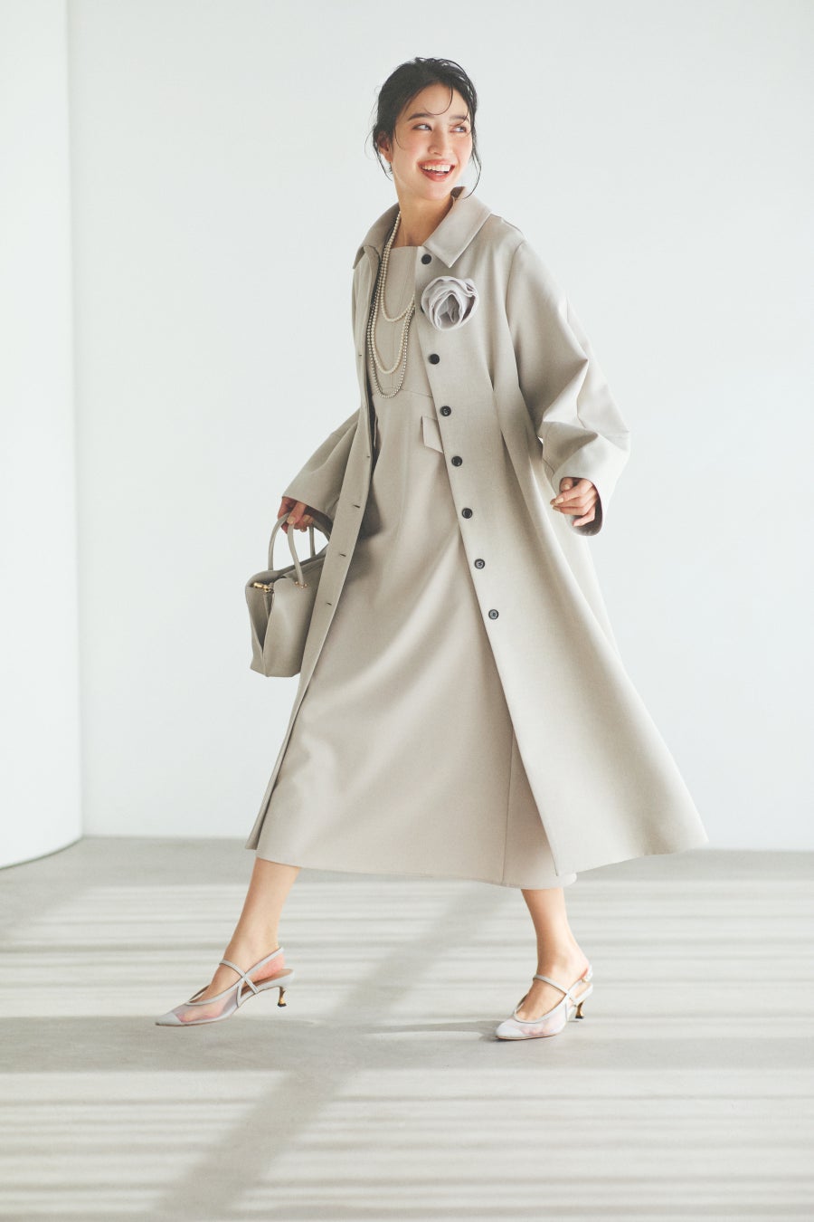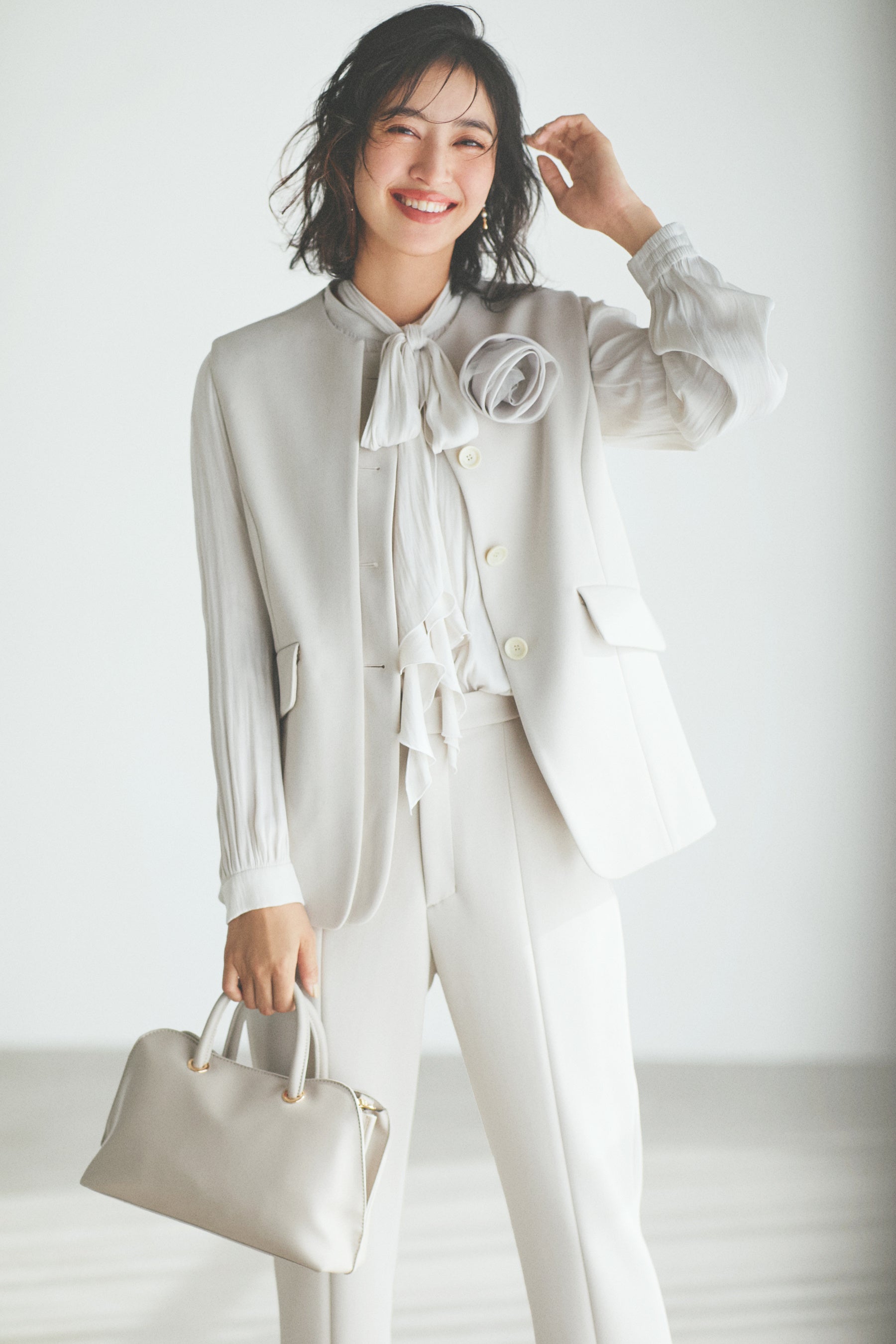 「ハレの日のセレモニー服には厳かなきちんと感と共に、母らしい華やかさも欲しいところ。そんな願望を叶えてくれるセットアップ。着るだけで美しいIラインシルエットが完成します。