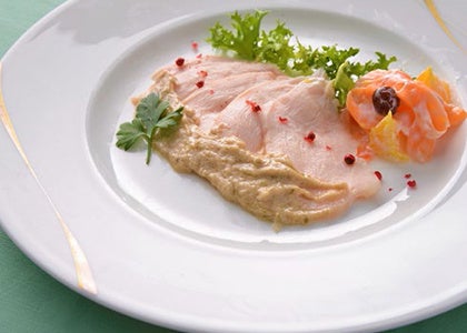 【オードブル】低温調理した鶏のコンフィ トンナートソース ヨーグルトサラダを添えて
