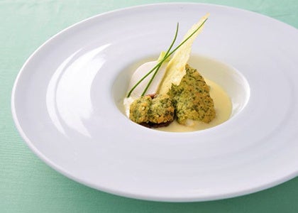 【ポアソン】真鯛のグラティネ サワークリームソース 浜産椎茸のヴィエノワーズとともに