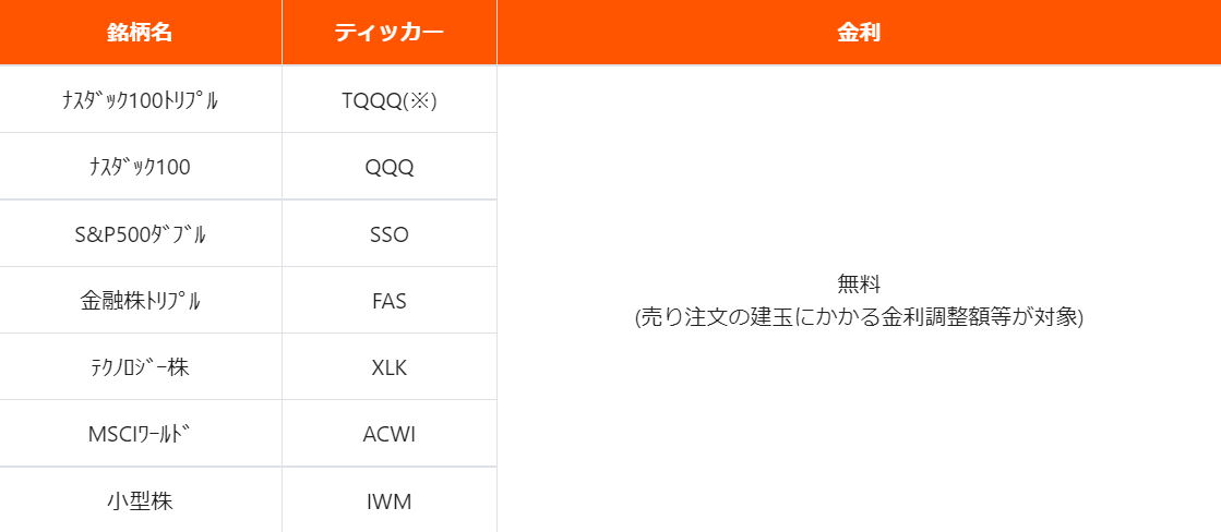 また、2022年10月2日(日)より、ETFの合計7銘柄において、売り建玉に金利(金利調整額・貸株調整額)が無料になるキャンペーンが開始!