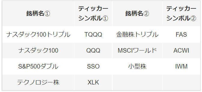 今回「ショート」をリリースする銘柄は、トライオートETFで人気の高い、下記の7銘柄となっております。