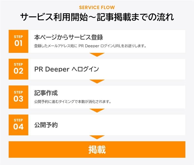サービス案内ページ( https://pr-deeper.media.iid.co.jp/ )から申し込み後、発行されるログイン情報を用い、専用管理画面から記事の入稿・公開が可能です。オンライン完結でクイックに発信できるだけでなく、それぞれのメディアの専門性を活かし、発信したい情報に応じた注目度の高いユーザーへ情報を届けられます。