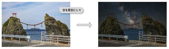 空の色の変更や不要な要素の削除など、幅広い編集に対応しています。また、写真をアップロードした段階で AI で写真を解析しておすすめの提案をしてくれる機能も搭載されています。提案された内容によっては、クレジットの消費がされないものもあるので、気軽に試してみることができます。