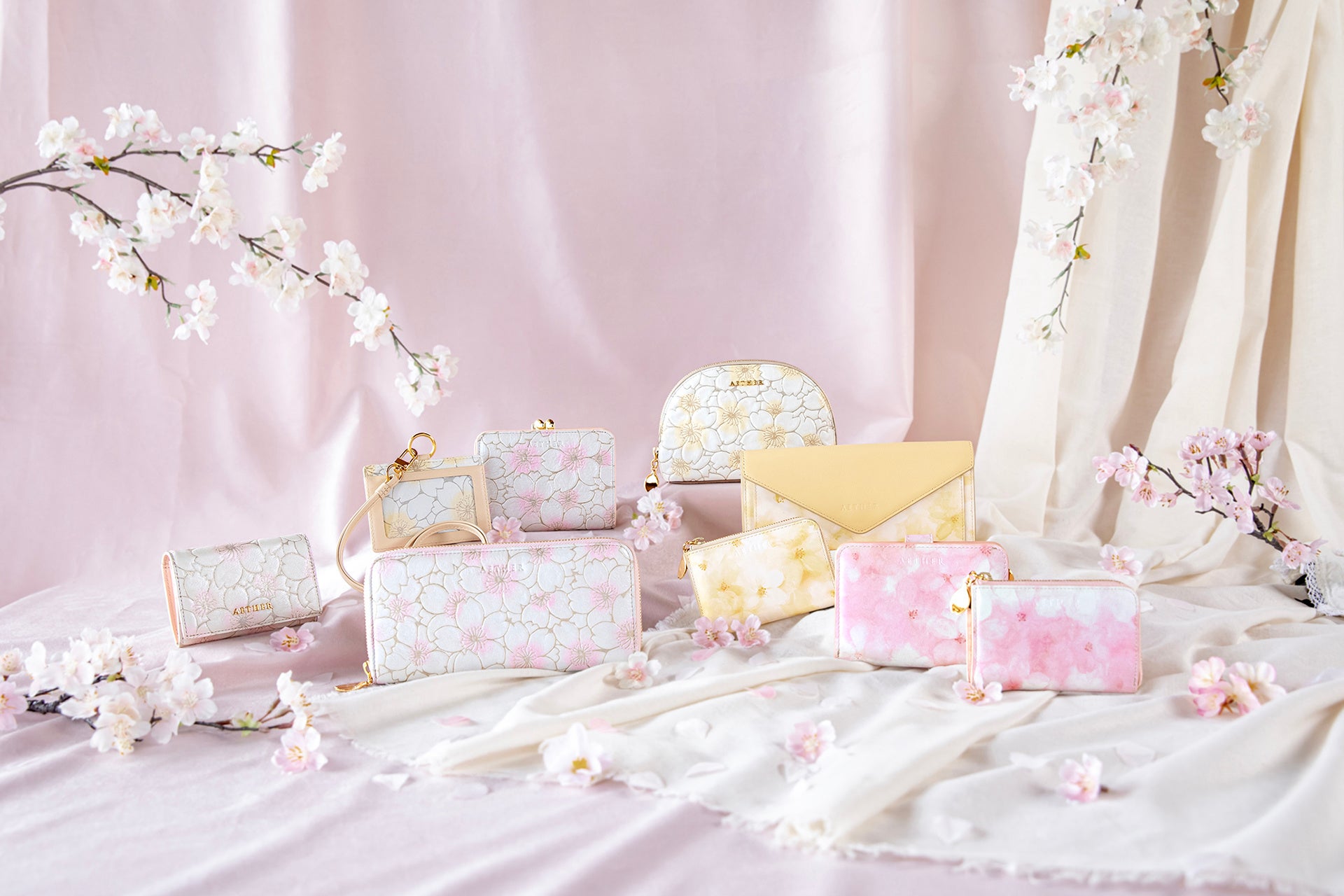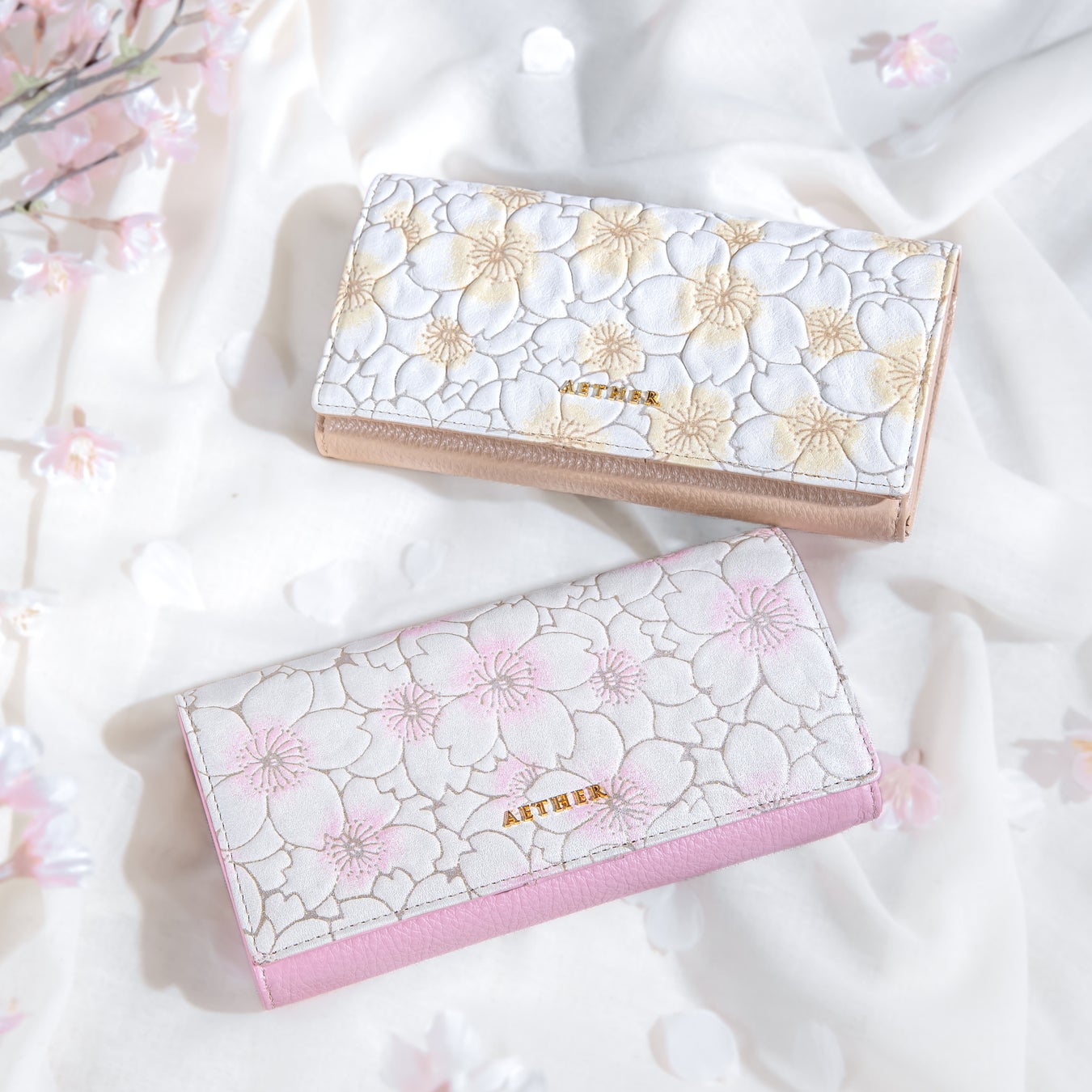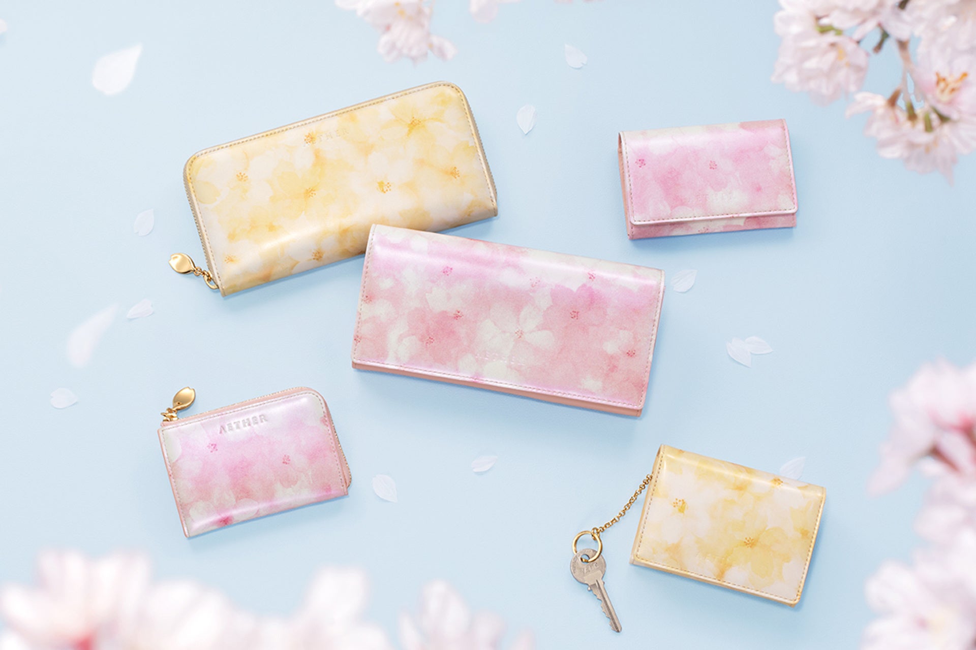 牛革の銀面を使用し、型押しで柔らかなサクラの花びらを表現した『SAKURA(サクラ)』シリーズと、水彩タッチのサクラ柄に繊細なパールがきらめく『FLORAISON(フロレゾン)』シリーズ。財布やバッグをはじめ、新生活に役立つIDケースなどの小物まで、全22型36商品をご用意しました。