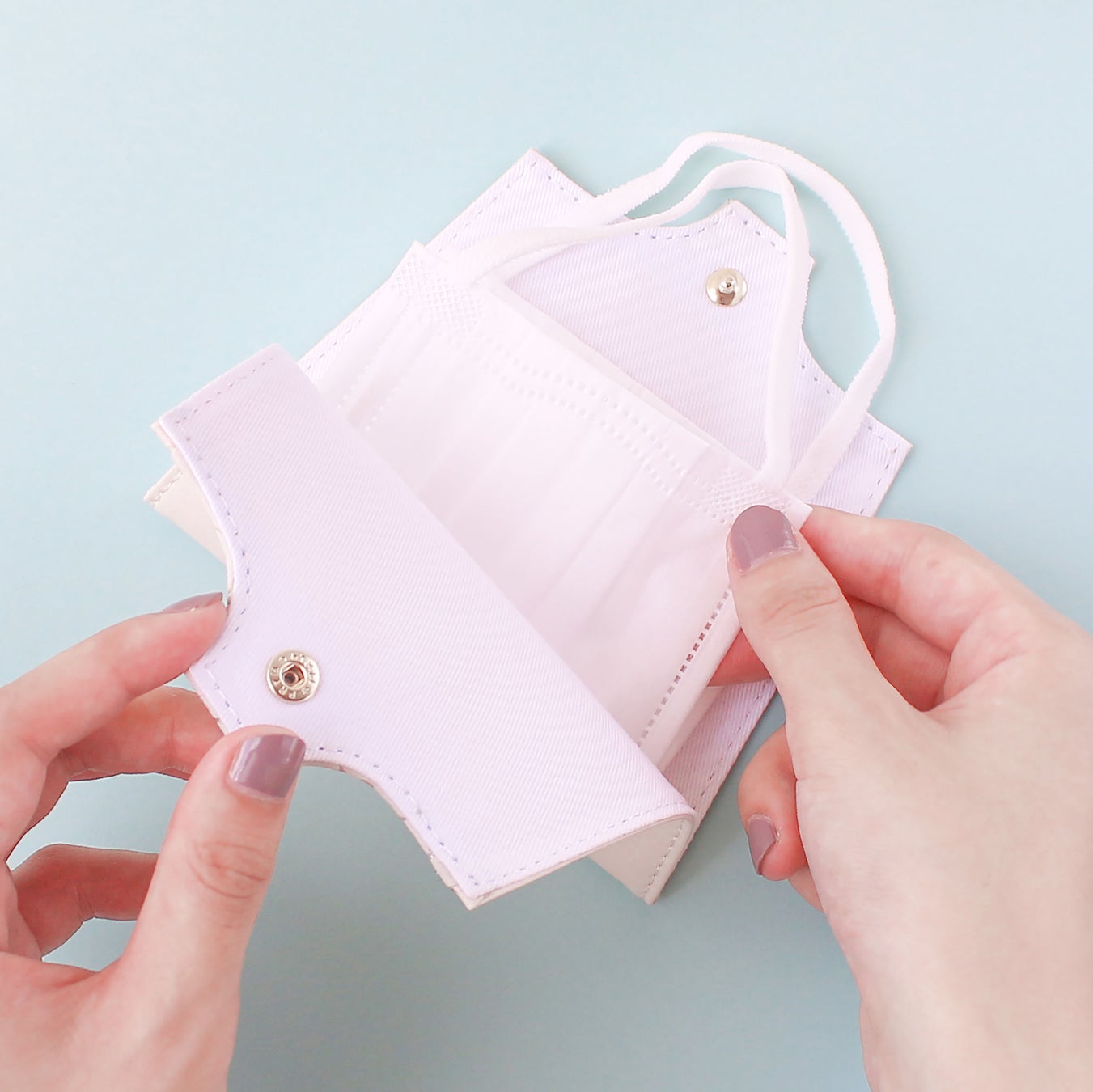 マスクを入れて半分に折りたたむと、ハンドバッグのように見える遊び心あるデザイン。内側に抗菌・抗ウイルス生地を使用しているのも嬉しいポイントです。