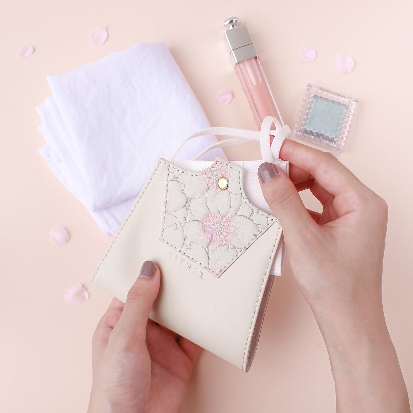 購入特典として、サクラ柄レザーのマスクケースを先着でプレゼント。3月13日(水)より西宮阪急でもPOPUPを開催。