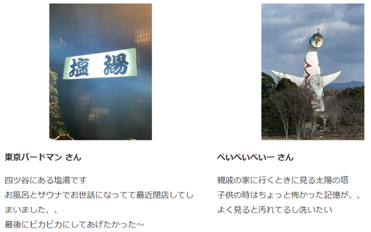 何を「まちの誇り」と感じるかは人それぞれ。それでも、まちへの愛はみんな同じです。まちにあるモノ・風景への愛着が特に感じられる作品を選ばせていただきました。