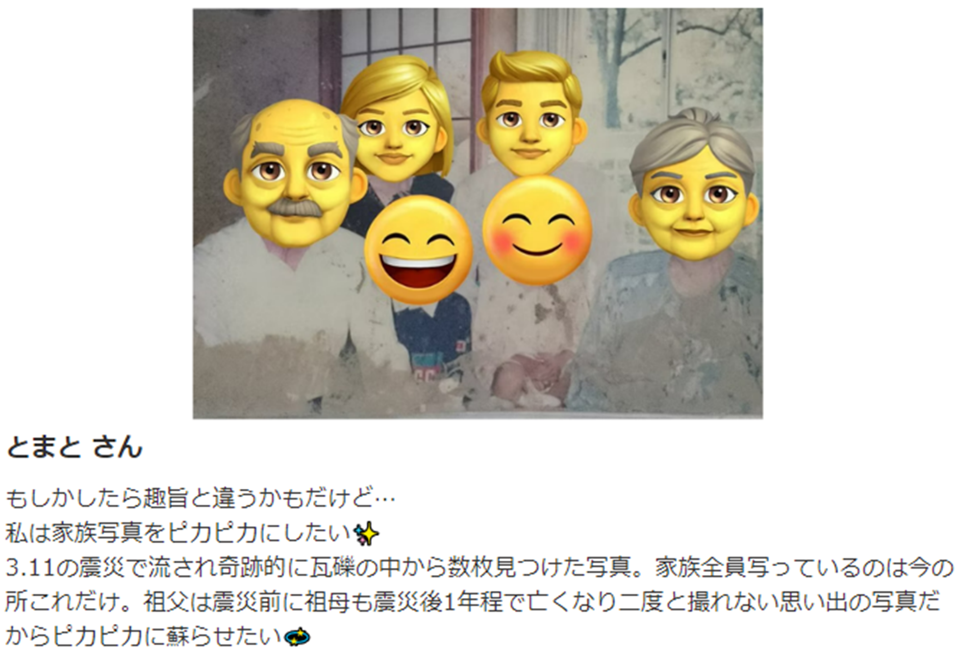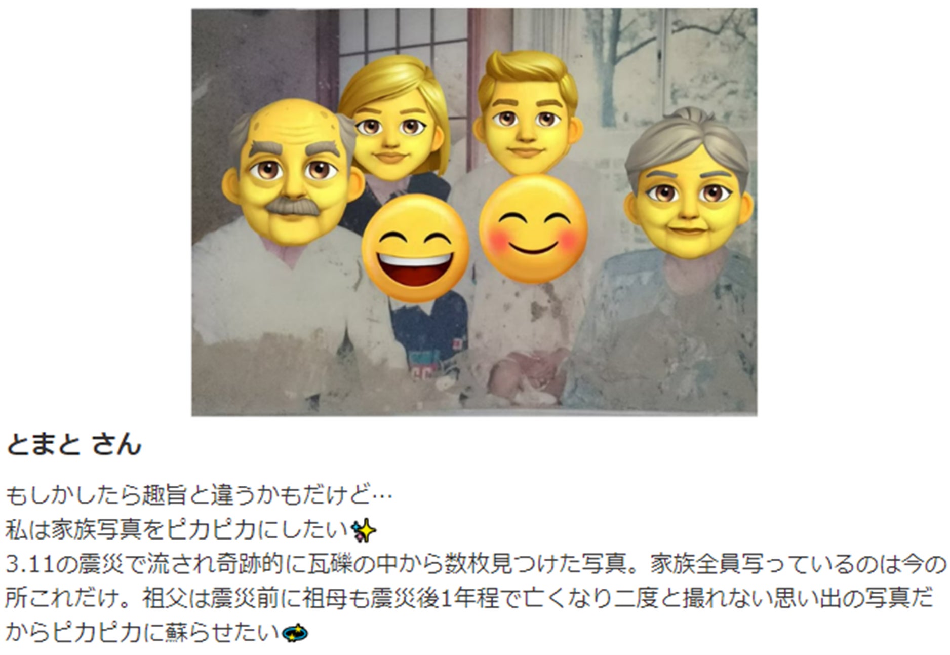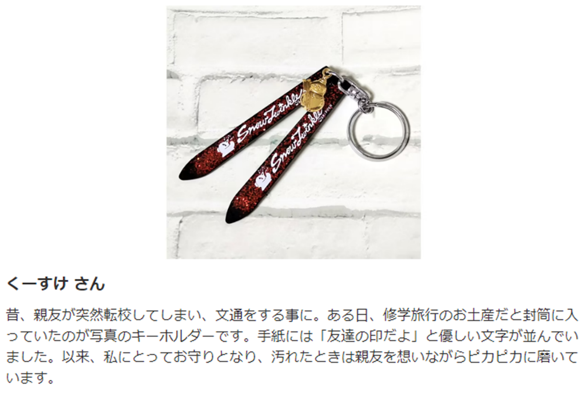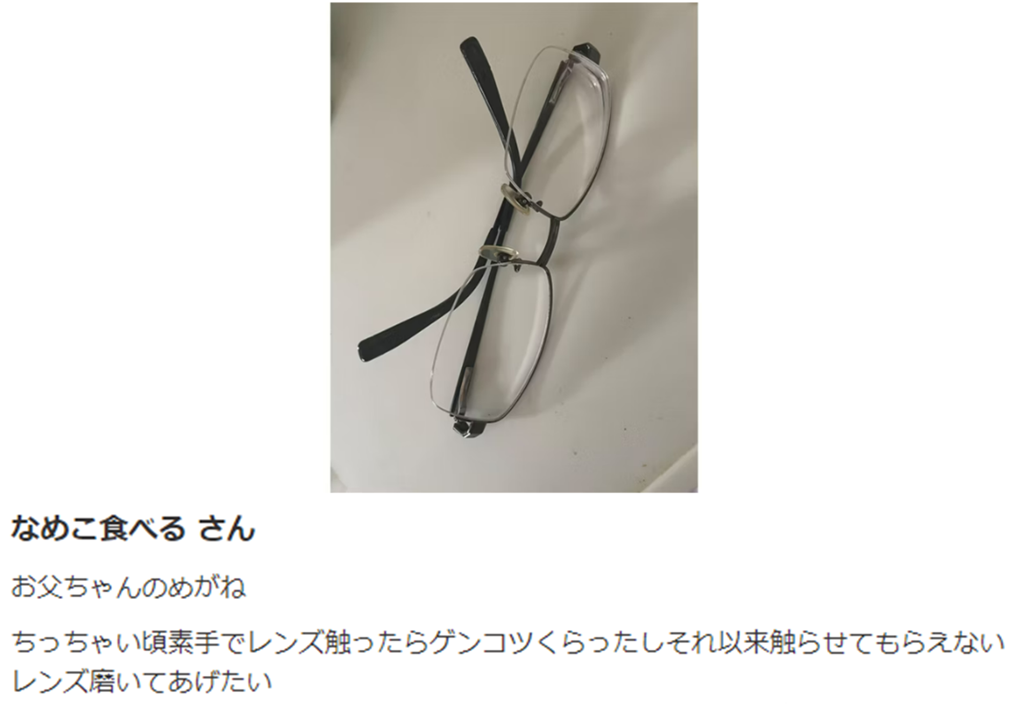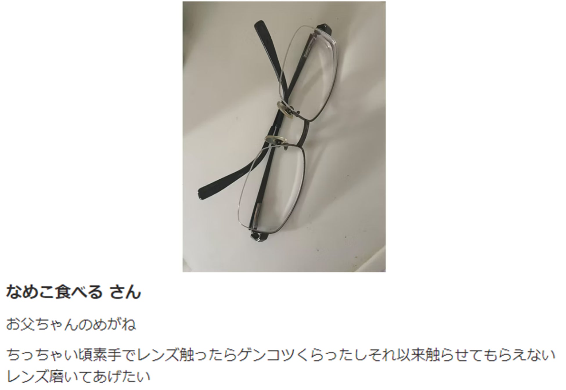 大賞は、「転校した親友との、友情の印(キーホルダー)」「3.11震災後、奇跡的に見つかった家族写真」「幼少期に指紋をつけて以来、触らせてもらえない、お父さんの眼鏡レンズ」