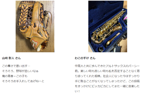 入選した作品には、輝く青春時代に部活や勉強等で苦楽を共にした思い出や、大好きな趣味を長く続けたいからこそピカピカにしたいと願う気持ち、家族みんなの共通の思い出や思い入れのあるまちの風景等、ものを通じて見えてくる様々なエピソードが選ばれました。