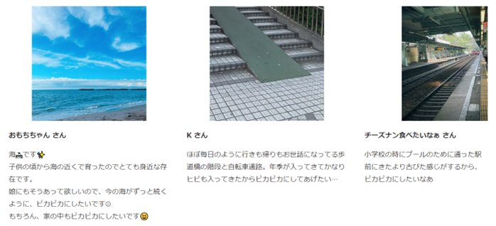 皆様からお寄せいただいた応募作品の中から、「ピカピカにしたい気持ち」を特にあと押ししたいと思った投稿を、最優秀作品として3件、優秀作品として20件選出しました。中には、「まちのライフライン」として安心なくらしの実現に貢献したいと願うカインズとして、防災の日を前に一層強く印象に残る作品や、苦しかったコロナ期間を乗り越えた今だからこそ良い思い出となったことが想像できる作品も含まれています。