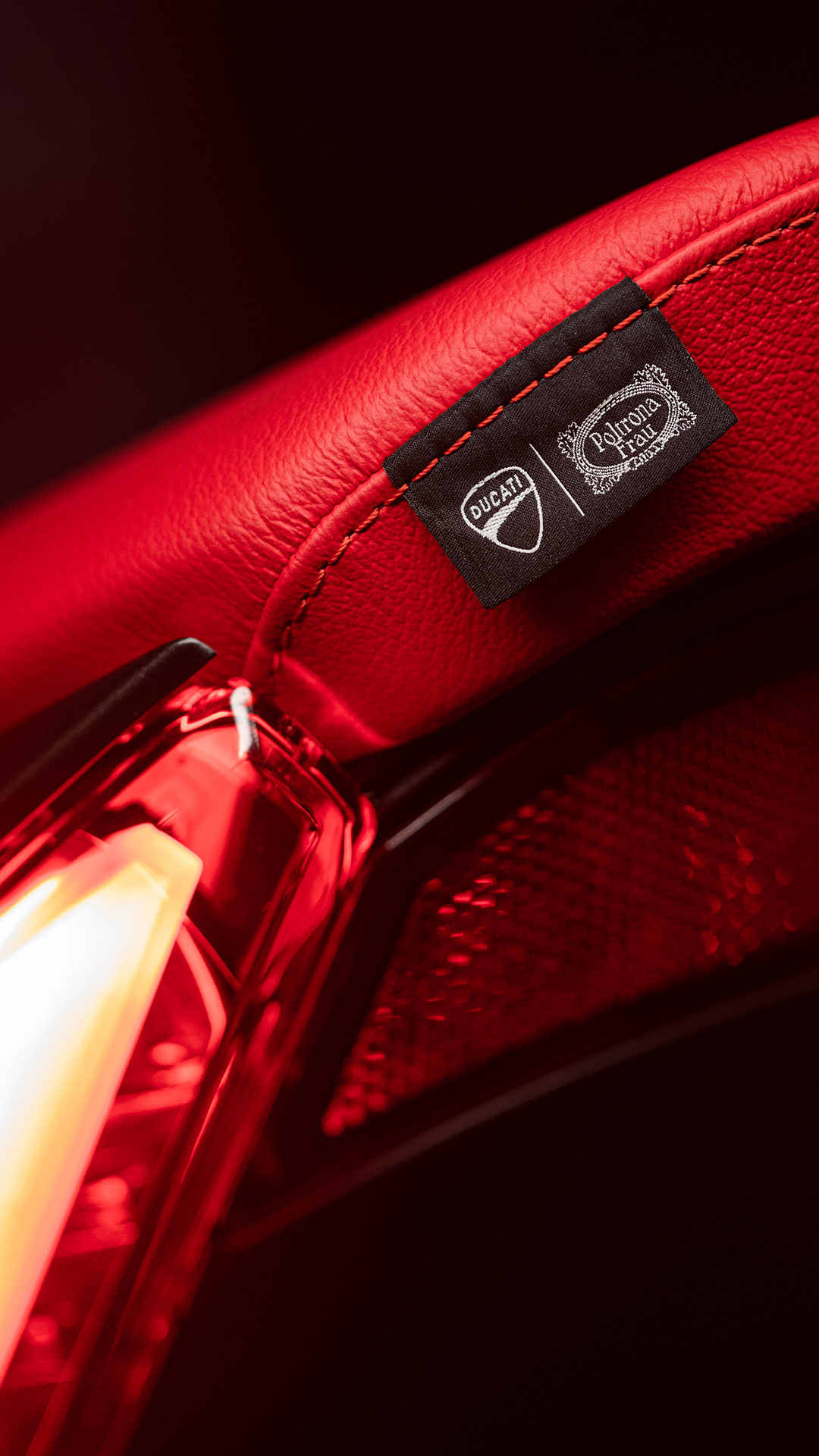 この専用シートにはレーザー加工で「XDiavel Nera」の名前を想起させる「X」が刻印されており、ポルトローナ・フラウならではの高度な造りも魅力の一つです。