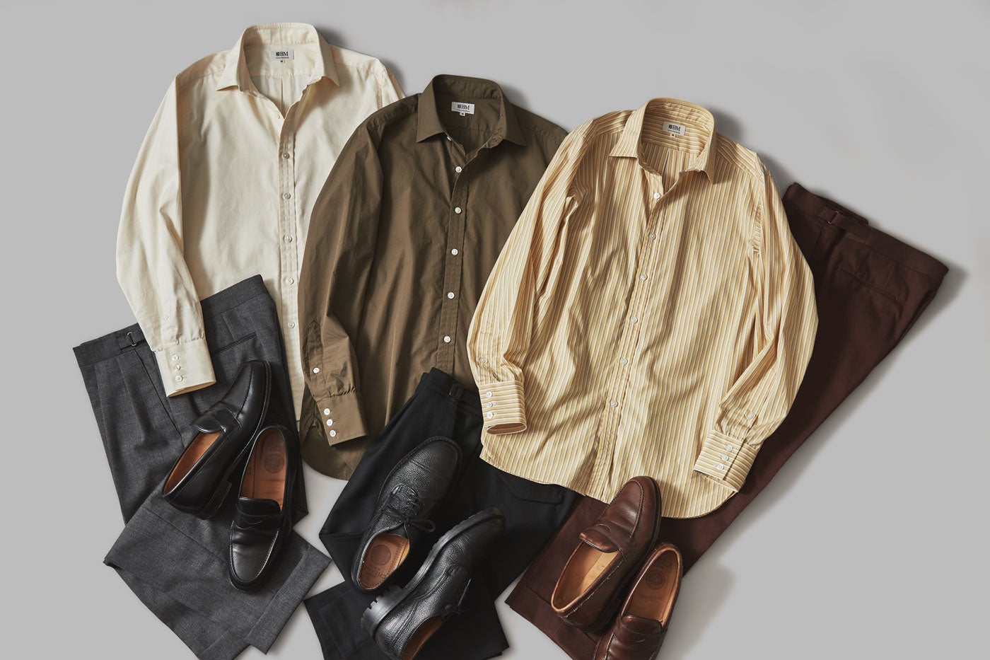 長らく続いたTシャツブームも一段落し、再びシャツの人気が高まりつつある昨今。 春夏には軽快な“羽織りもの”として活用するスタイルが注目されましたが、実は秋にもシャツが重宝すると四方さんは話します。