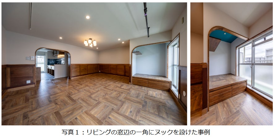 今回のアンケート調査でも、半数以上の人が「リビング・ダイニング」を最もこだわりたい住まい空間として挙げていたことから、今後もリノベーション・リフォームの際にリビングにちょっとして居心地の良い空間を取り入れる方が増えそうです。