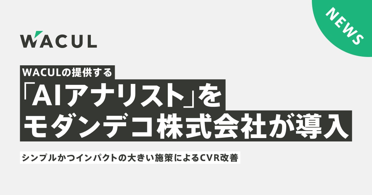 データと知⾒を核に、戦略から実⾏までマーケティングDXを⼀気通貫で⽀援する株式会社WACUL(本社:東京都千代⽥区、代表取締役社⻑:⼤淵 亮平、証券コード:4173、読み:ワカル、以下当社)は、インテリアEC業界のモダンデコ株式会社(住所:広島県広島市中区、代表取締役社長:小林 敬弘)が「AIアナリスト」を導入し、定性情報だけでなく定量情報も活用して、インパクトの大きな改善施策を実装し、CVR改善を実現したことをお知らせします。