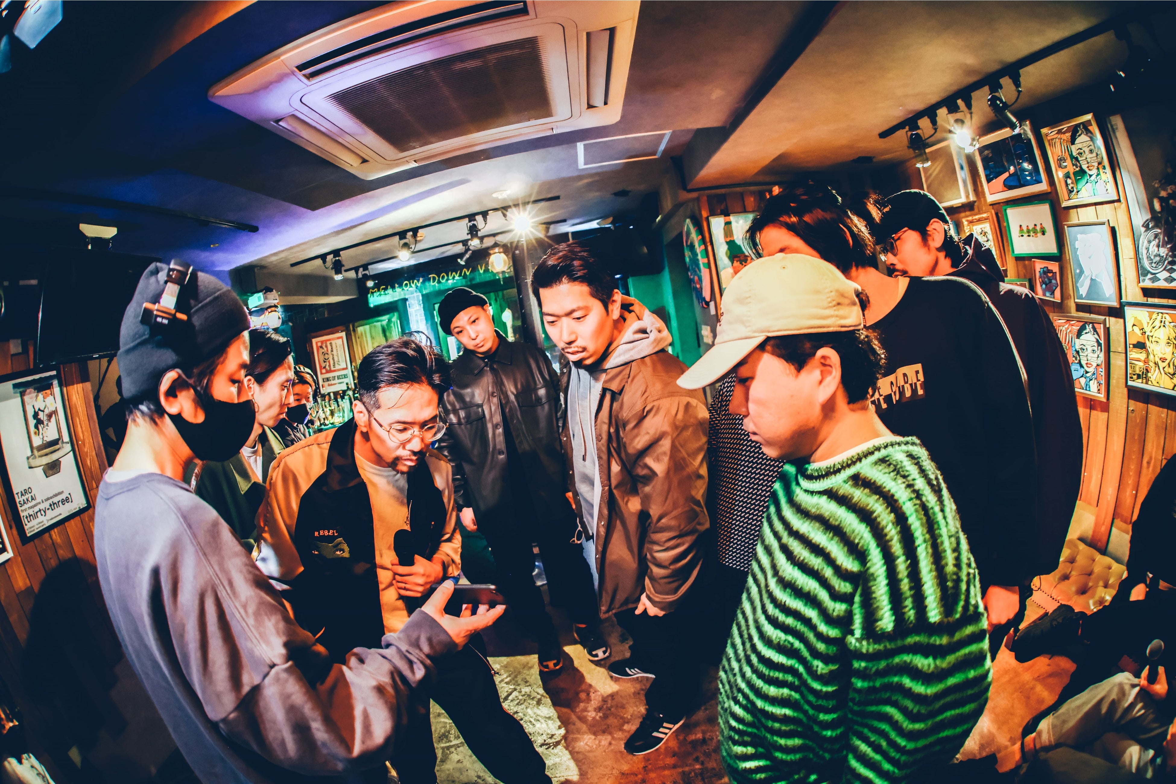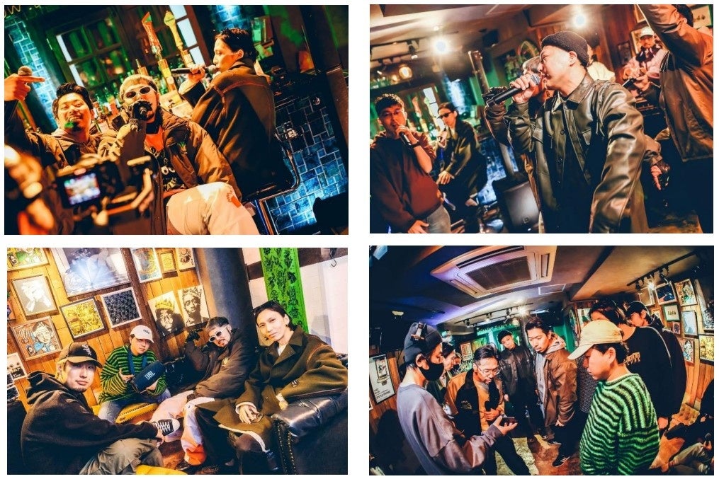YouTubeでのパフォーマンス動画は 2,500万回再生を突破し、また、昨年の「キングオブコント2022」オープニングソングを手がけるなど、今日本のヒップホップシーンで注目度急上昇の “梅田サイファー”。その彼らが、ポータブルPAスピーカー「JBL PRX ONE」を持ち向かった先は、大阪・心斎橋にある顔なじみのバー。いつもは飲みに集まる場所も、「JBL PRX ONE」があればたちまちステージとなり、クラブシーンに変わります。