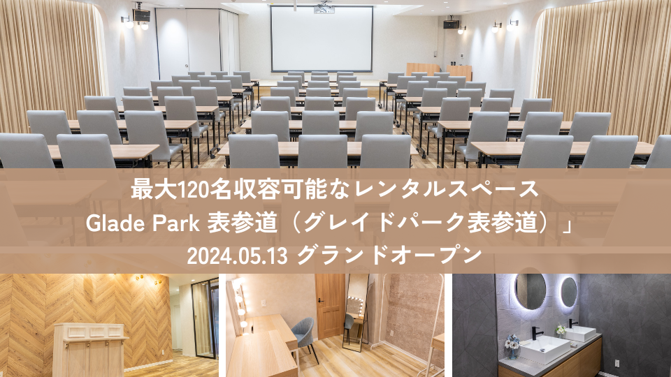 表参道駅より徒歩2分の好立地でアクセス良好!最大120名収容可能なレンタルスペース「Glade Park 表参道(グレイドパーク表参道)」が5月13日にグランドオープン