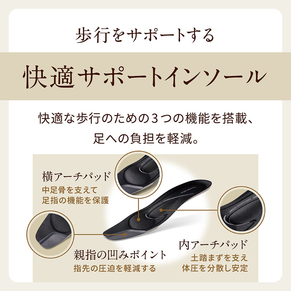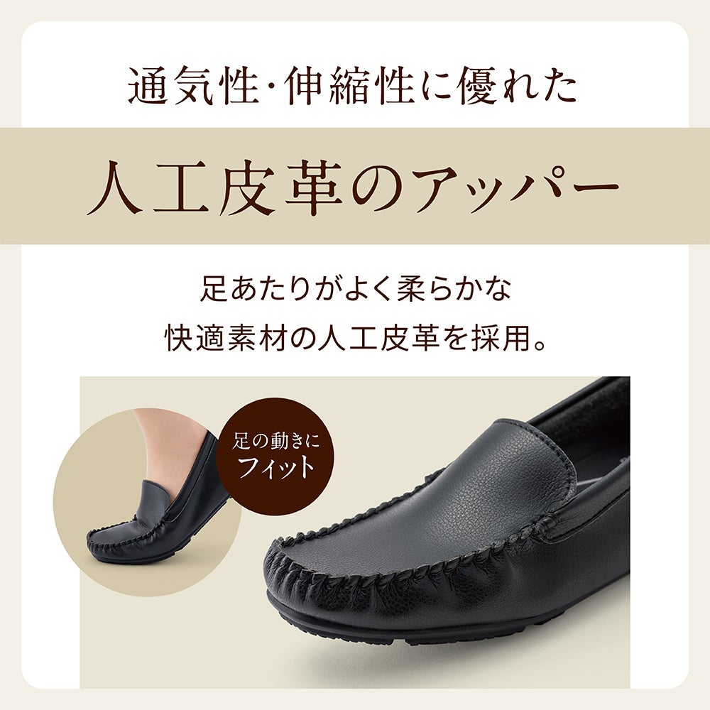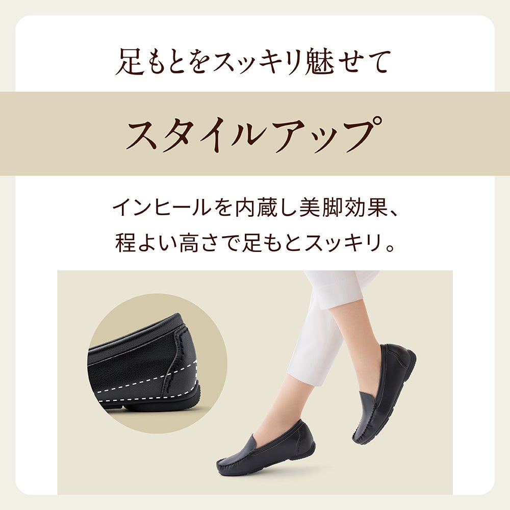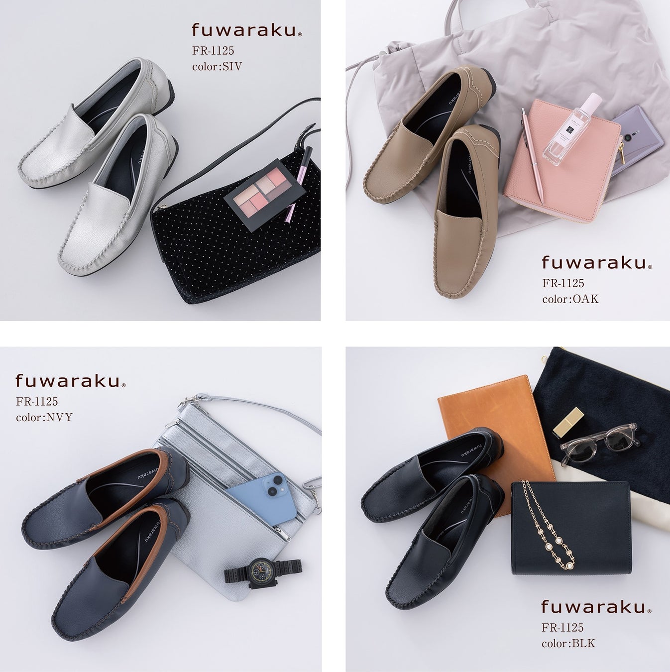 今回、新たに加わったのは、ブランド初となるモカシンシューズ(FR-1125)です。快適な歩行のための3つの機能を搭載した快適サポートインソールや、車の運転にもおすすめの高屈曲ドライビングアウトソール、程よいインヒールで、足もとをスッキリと魅せてスタイルアップも叶えてくれます。また、通気性や伸縮性に優れたしなやかな素材を採用しているので、オンでもオフでも快適な歩行を実現します。