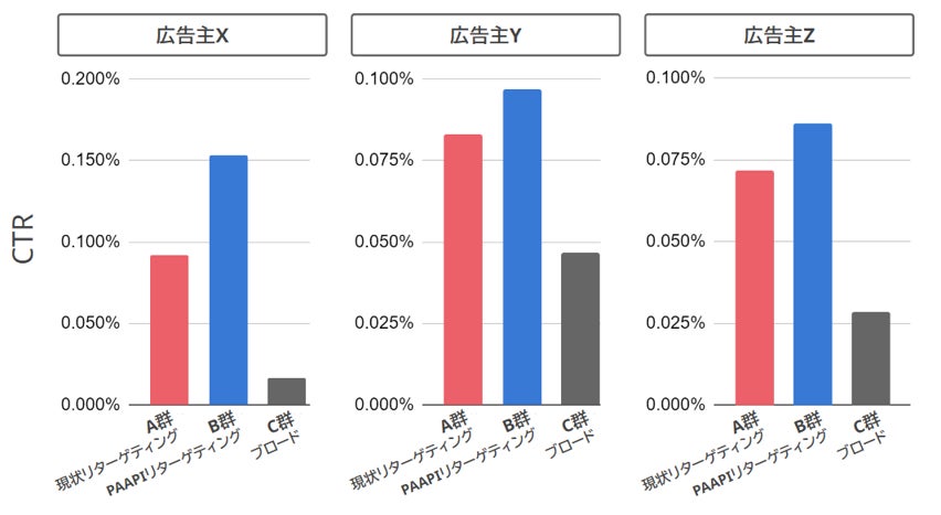 テストの結果、 Protected Audience API を用いた配信を行ったブラウザB群の CTR が一番高い結果となりました。この結果から、 Protected Audience API を利用した広告配信において、現状の 3rd Party Cookie を利用したリターゲティング配信に近しいターゲティングが動作していると考えています。