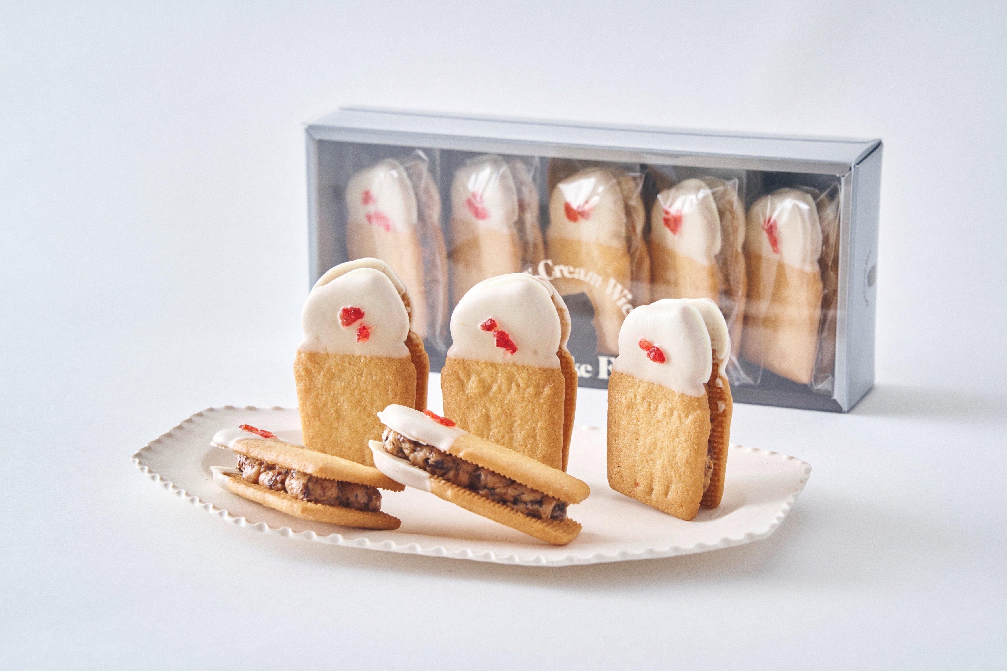 手づくりの過程と素材にこだわった人気のお菓子『フェアリークリームウィッチ』シリーズに、新たに「フルーツケーキ生バターサンド」が仲間入り。「フルーツケーキ」を生バターサンドにアレンジし、昭和レトロな『フェアリークリームウィッチ フルーツ生バターサンド』が完成しました。