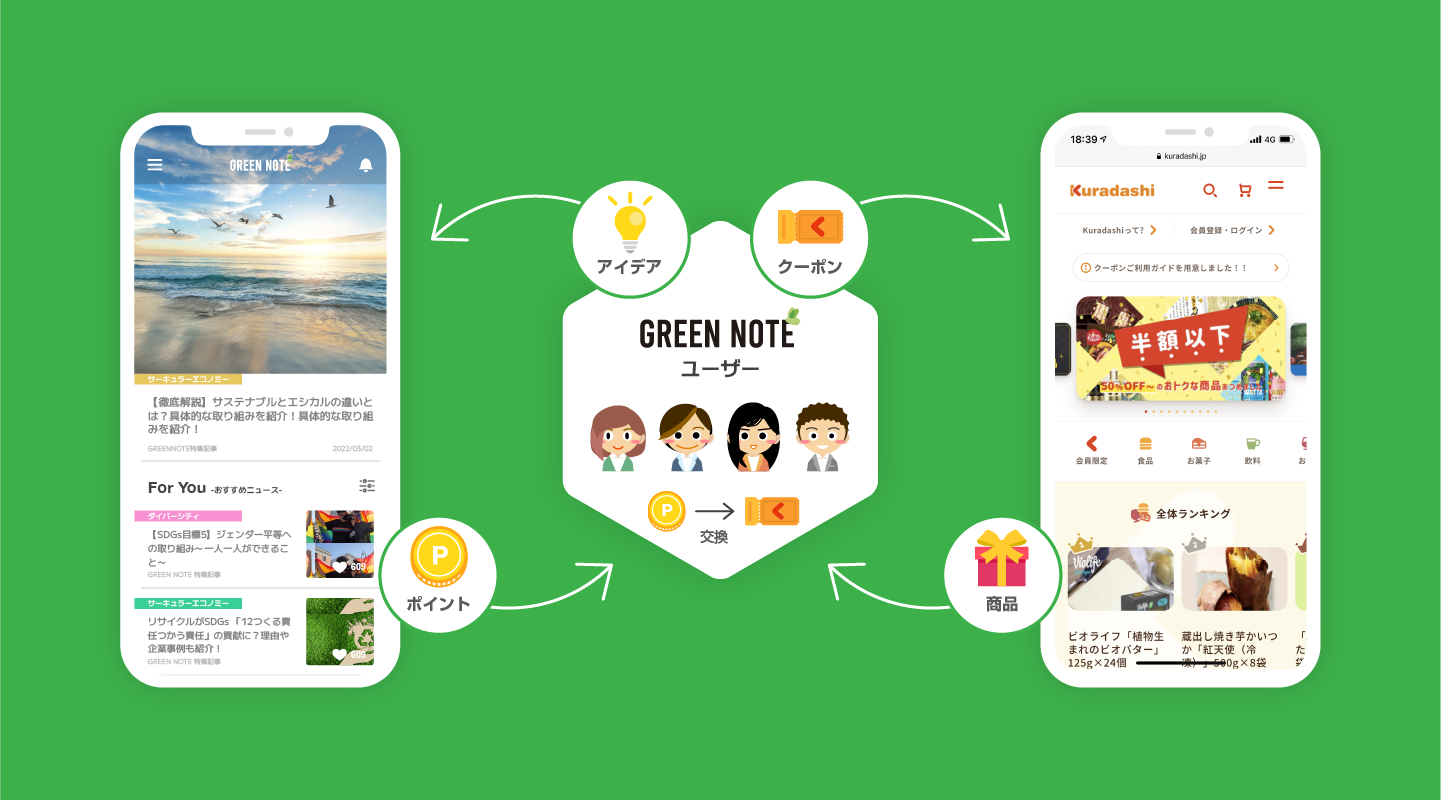 【Kuradashiクーポン取り扱い開始】SDGs/サステナビリティ専門ニュースアプリ『GREEN NOTE』の「ポイント交換」機能ローンチ